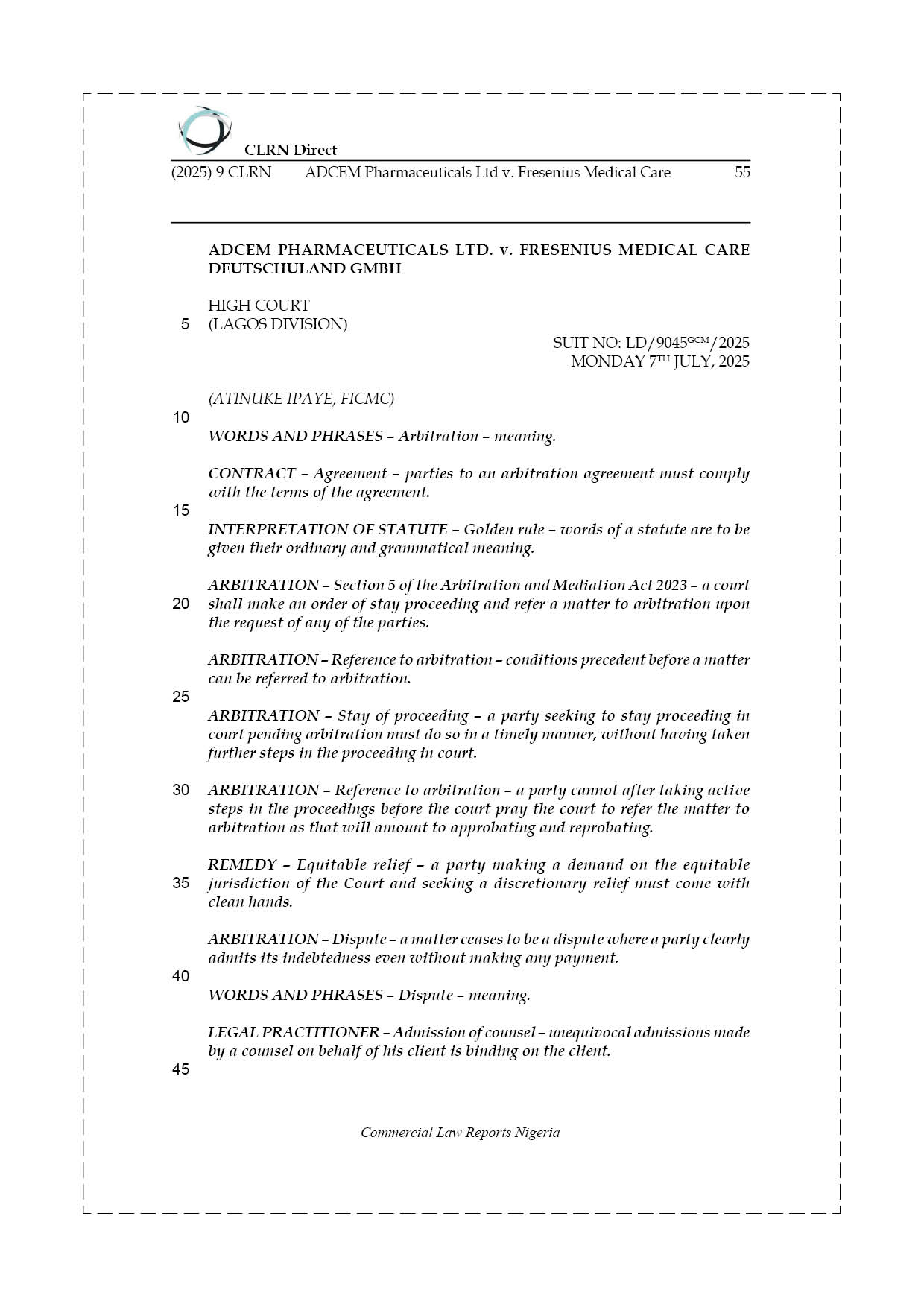 The Applicant alleged that due to the continuous devaluation of the Nigerian Naira (NGN) and the volatility of the exchange rate, the Applicant encountered financial difficulties which resulted in a delay in making payment for the Products supplied by the Respondent. Despite these challenges the Applicant remained committed to fulfilling its financial obligations and maintaining the long-standing relationship between the parties which has spanned over three decades (with the distribution agreement renewed periodically, the last renewal being the agreement from 1st January 2021 to 31st December 2022). Over this period the Applicant maintained that it has consistently provided valuable services to the Respondent enhancing its market presence and profitability within the Nigeria’s dialysis market where the Applicant holds a strong position.
