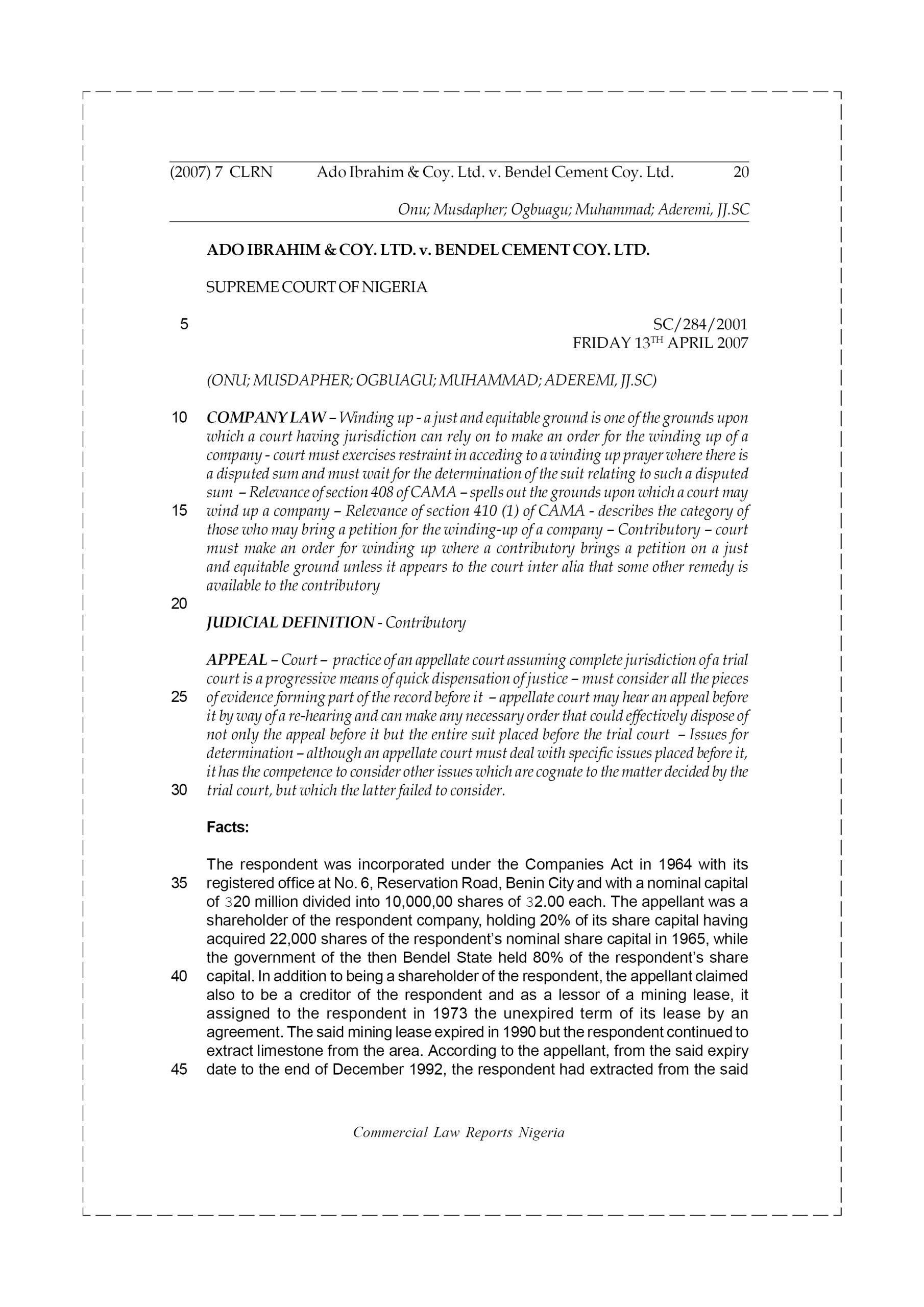 Ado Ibrahim & Coy. Ltd. v. Bendel Cement Coy. Ltd