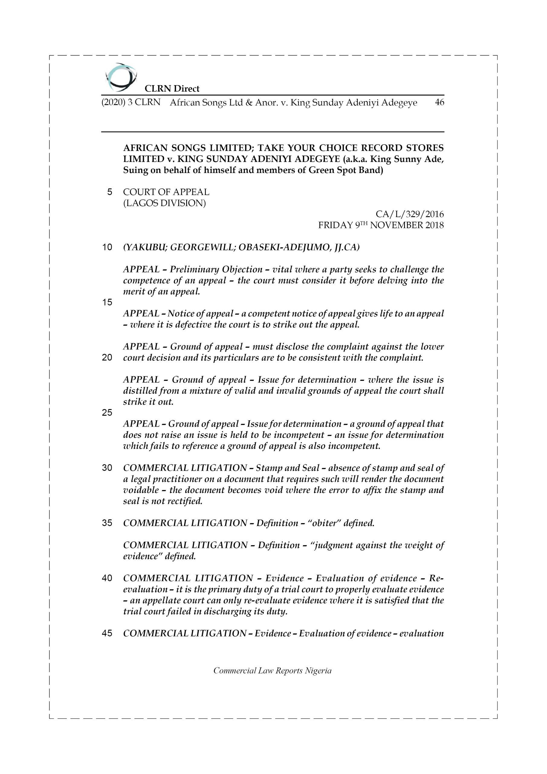 AFRICAN SONGS LTD & ANOR. v. KING SUNDAY ADENIYI ADEGEYE