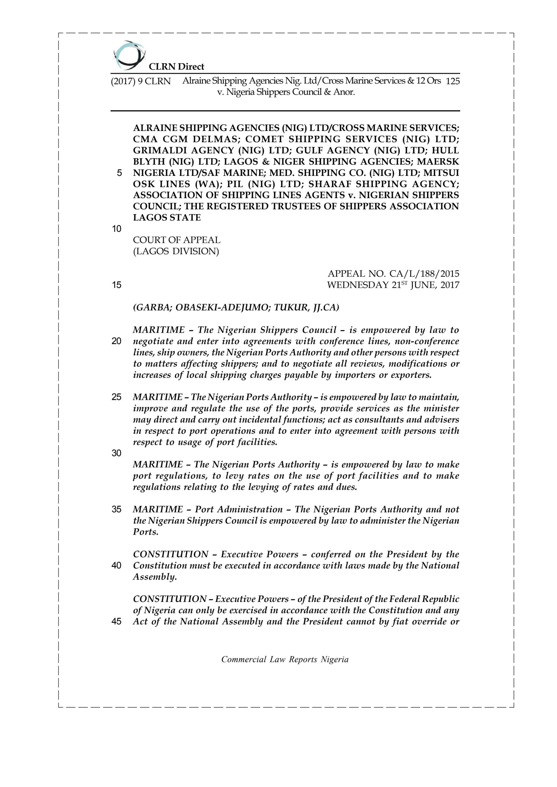 Alraine Shipping Agencies Nig. Ltd. Cross Marine Services & 12 Ors v. Nigeria Shippers Council & Anor.