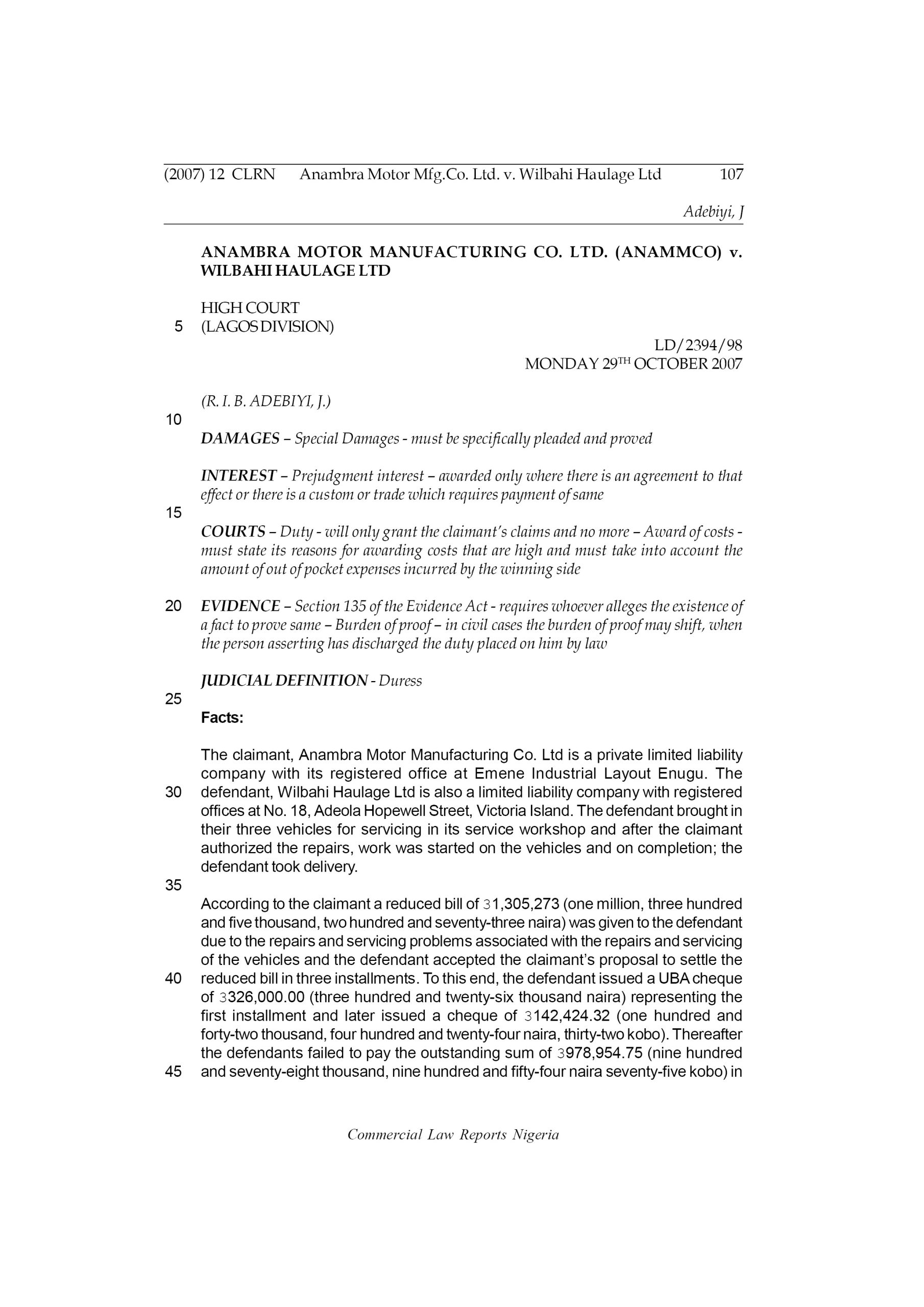 Anambra Motor Mfg.Co. Ltd. v. Wilbahi Haulage Ltd