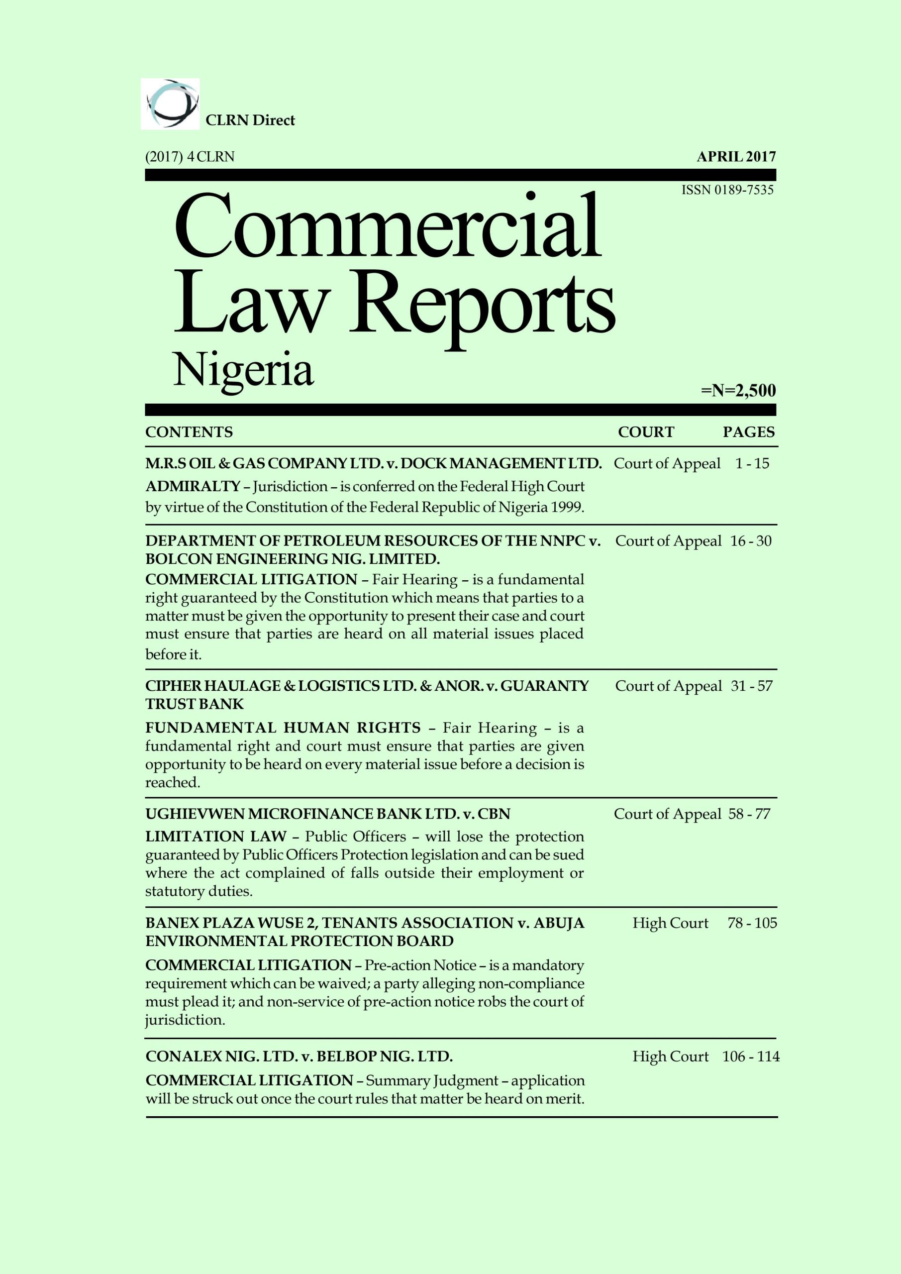 Conalex Nig. Ltd. v. Belbop Nig. Ltd. (2017) 4 CLRN 106