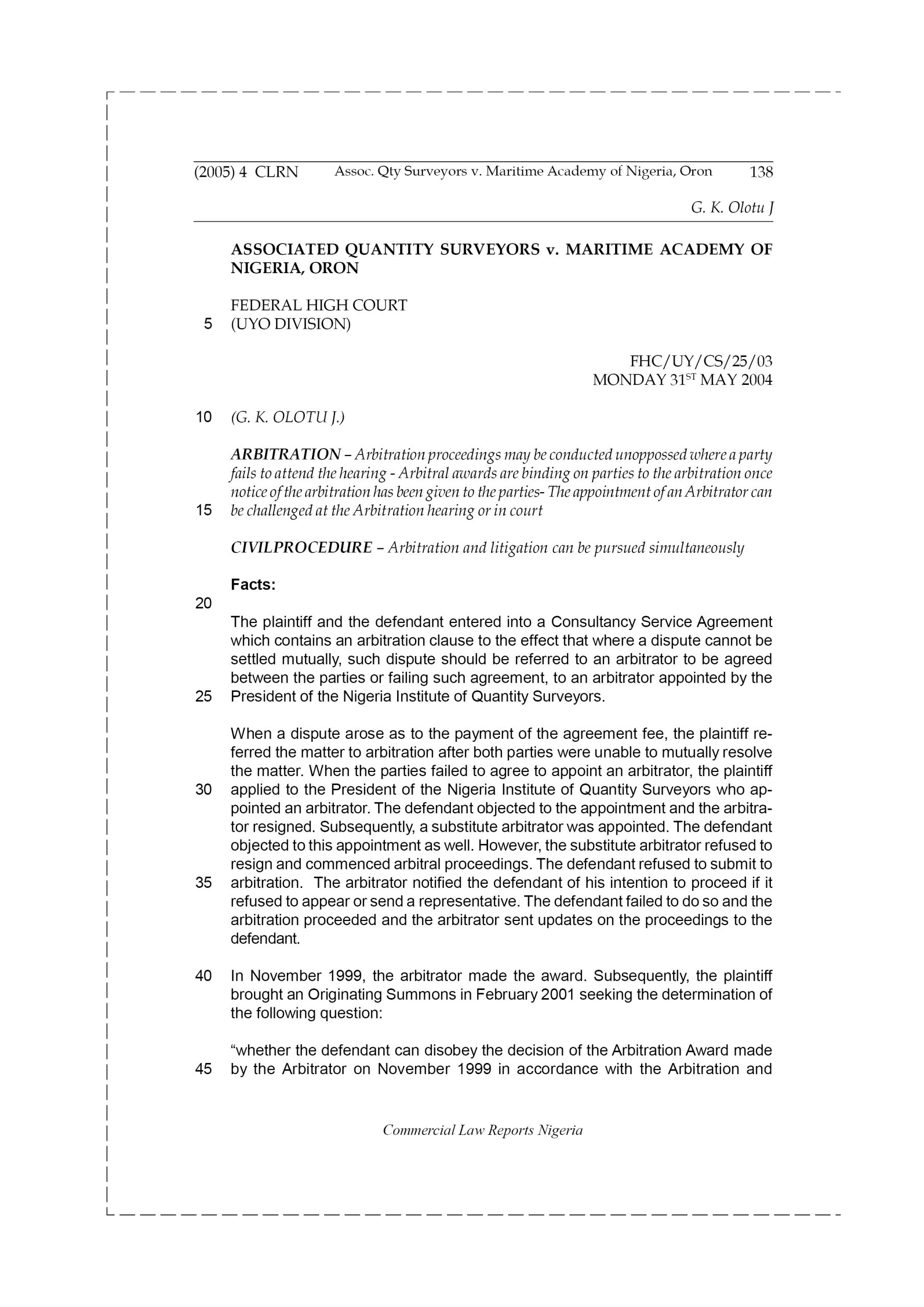 Associated Quantity Surveyors v. Maritime Academy of Nigeria, Oron