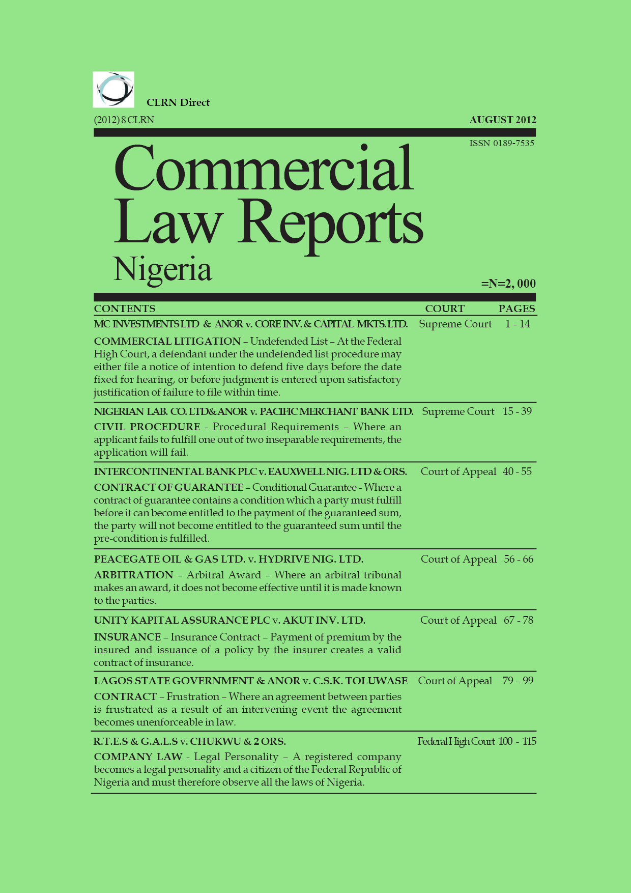 Peacegate Oil & Gas Ltd. v. Hydrive Nig. Ltd. (2012) 8 CLRN 56,