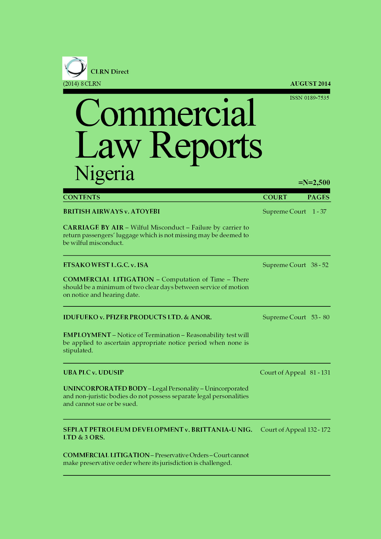 British Airways v. Atoyebi (2014) 8 CLRN 1,
