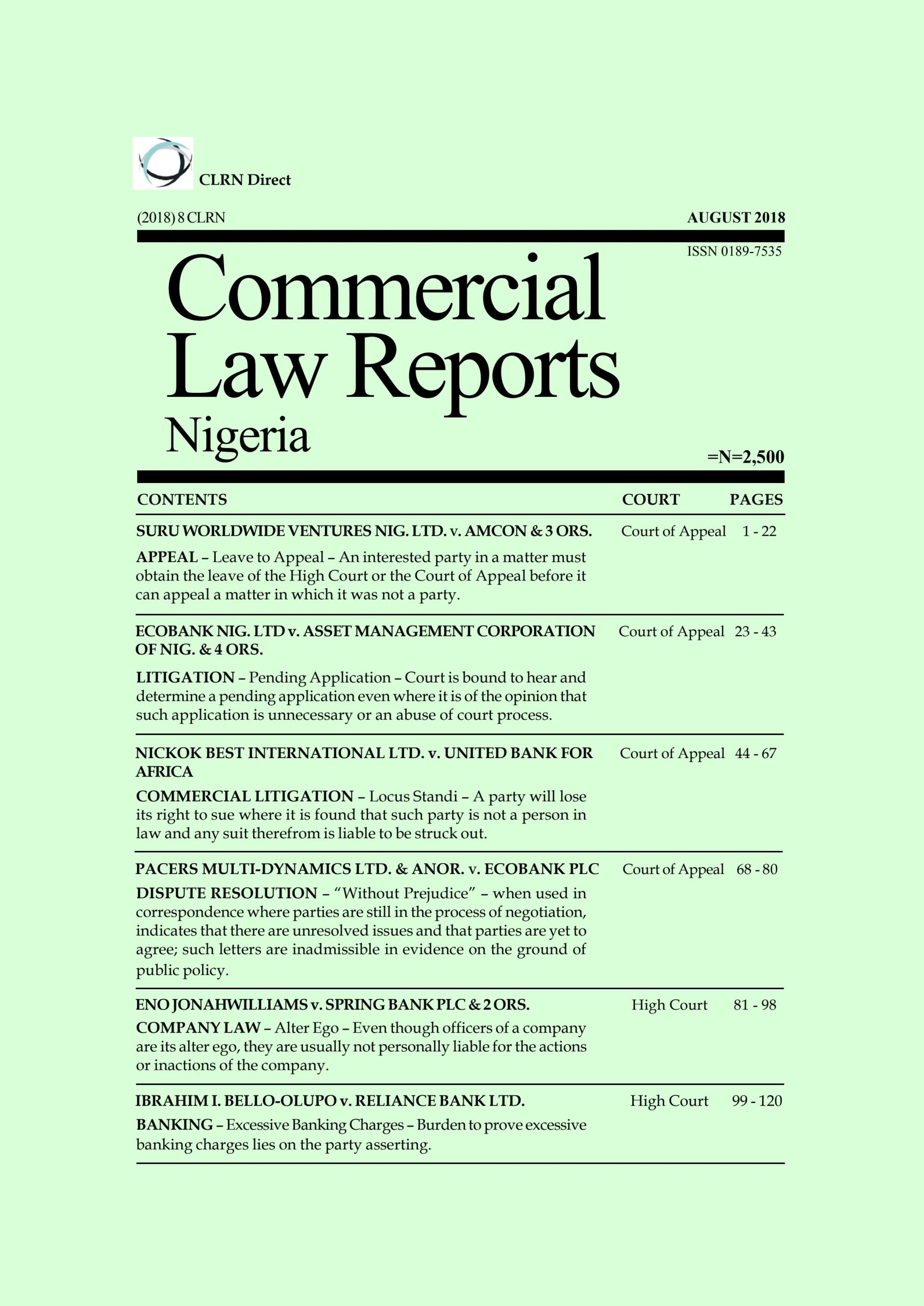 Nickok Best International Ltd. v. United Bank for Africa (2018) 8 CLRN 44,
