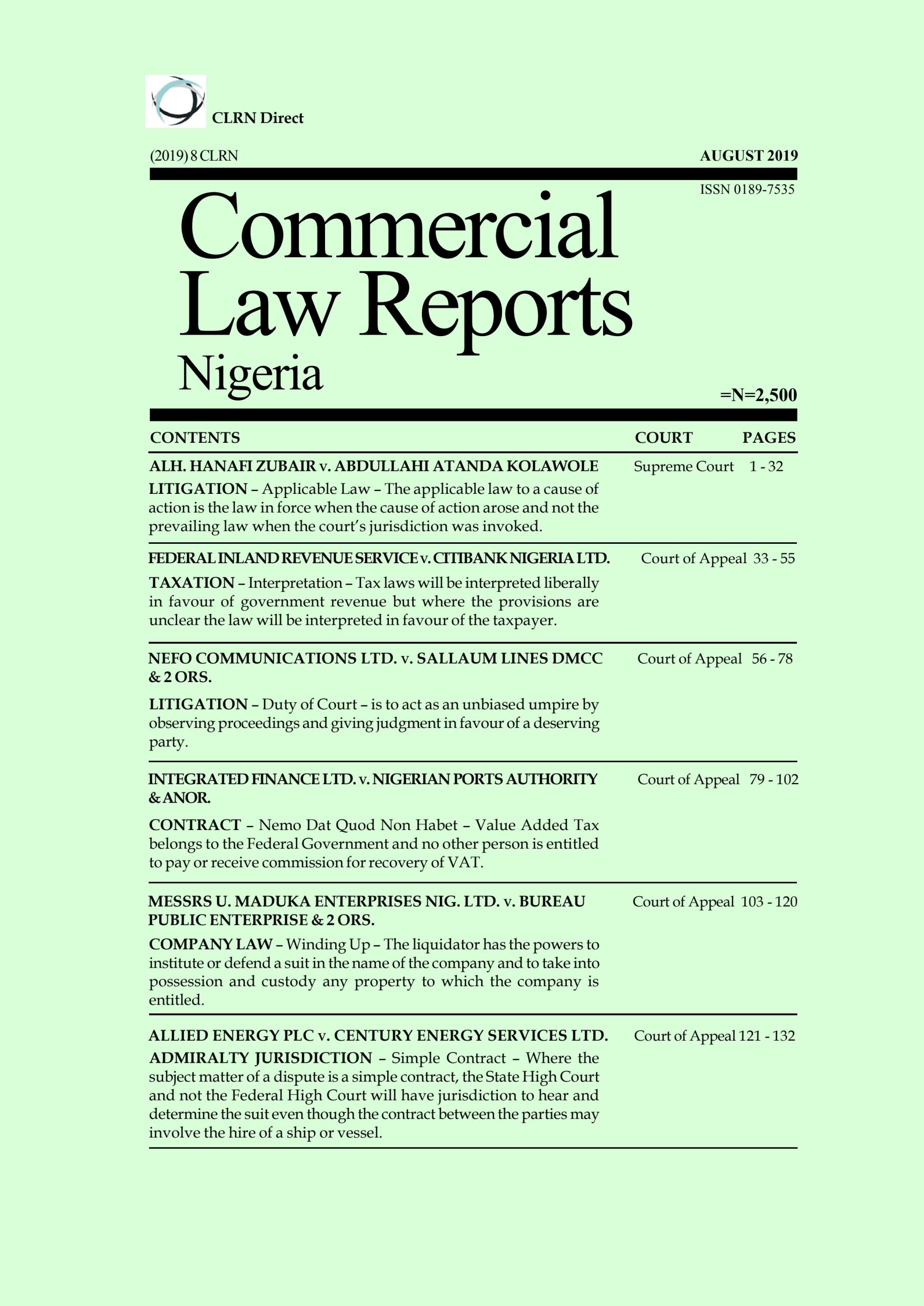 Integrated Finance Ltd. v. Nigerian Ports Authority & Anor.(2019) 8 CLRN 79,