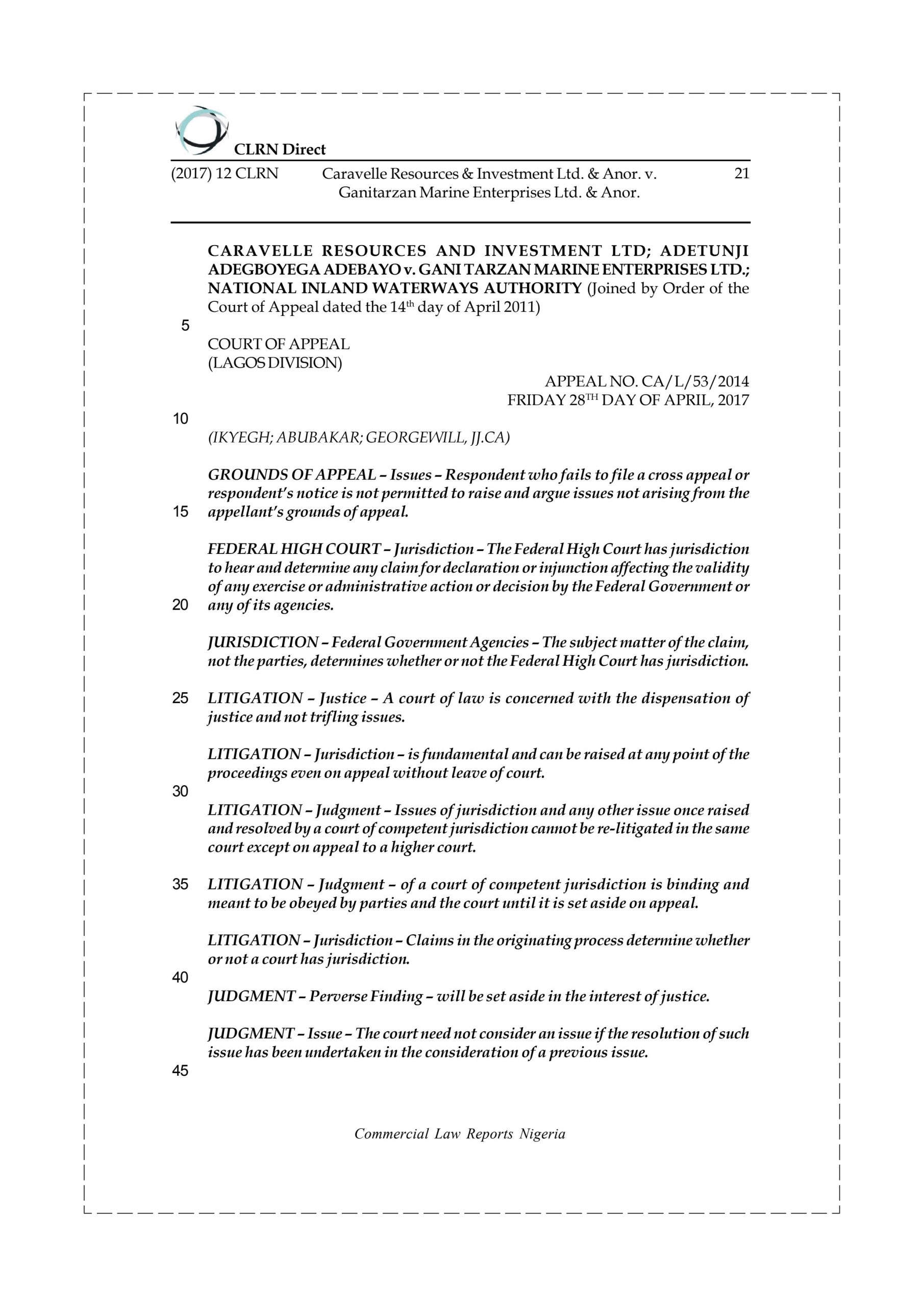 Caravelle Resources & Investment Ltd. & Anor. v. Ganitarzan Marine Enterprises Ltd. & Anor.