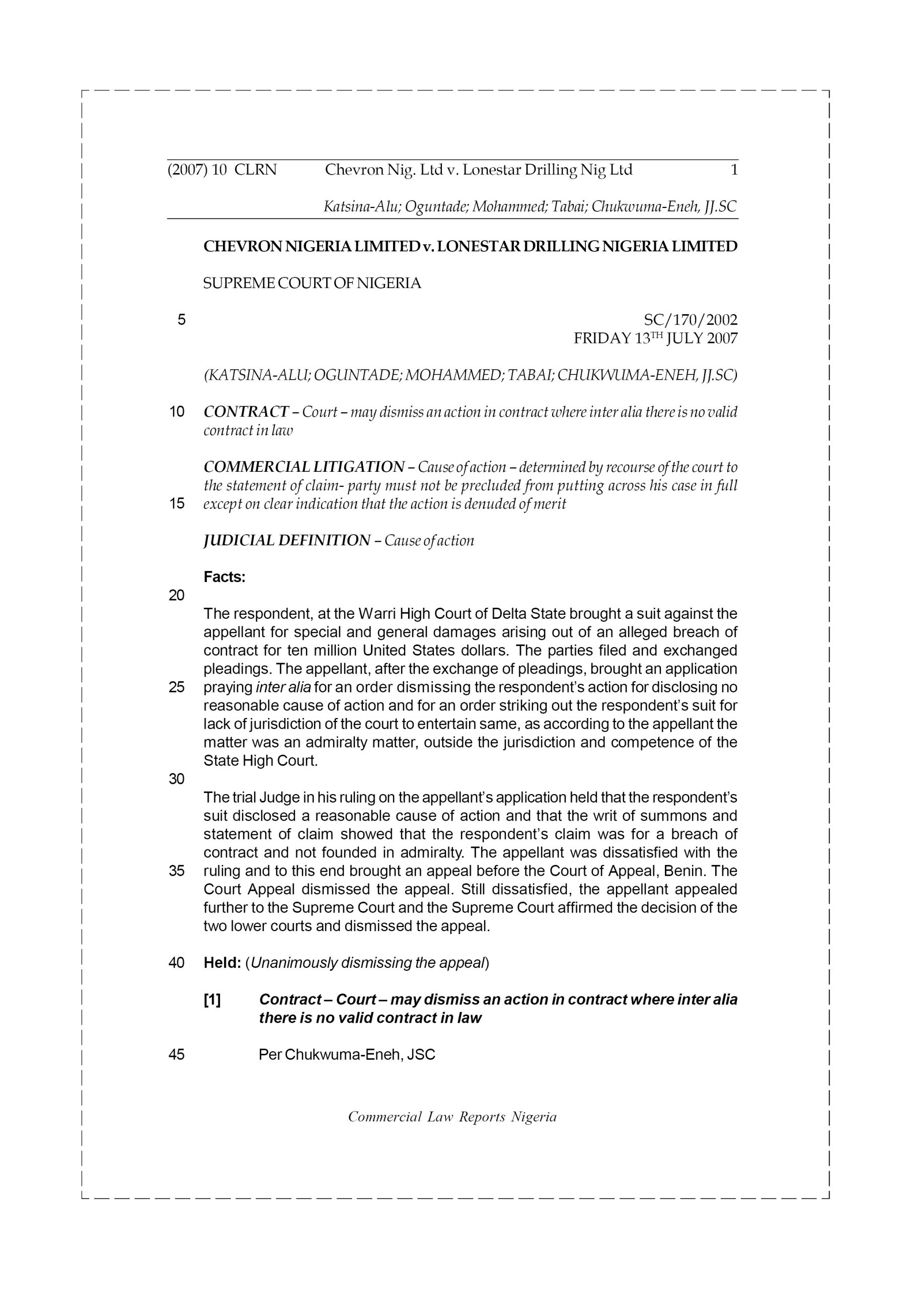 The respondent, at the Warri High Court of Delta State brought a suit against the appellant for special and general damages arising out of an alleged breach of contract for ten million United States dollars. The parties filed and exchanged pleadings. The appellant, after the exchange of pleadings, brought an application praying inter alia for an order dismissing the respondent’s action for disclosing no reasonable cause of action and for an order striking out the respondent’s suit for lack of jurisdiction of the court to entertain same, as according to the appellant the matter was an admiralty matter, outside the jurisdiction and competence of the State High Court.