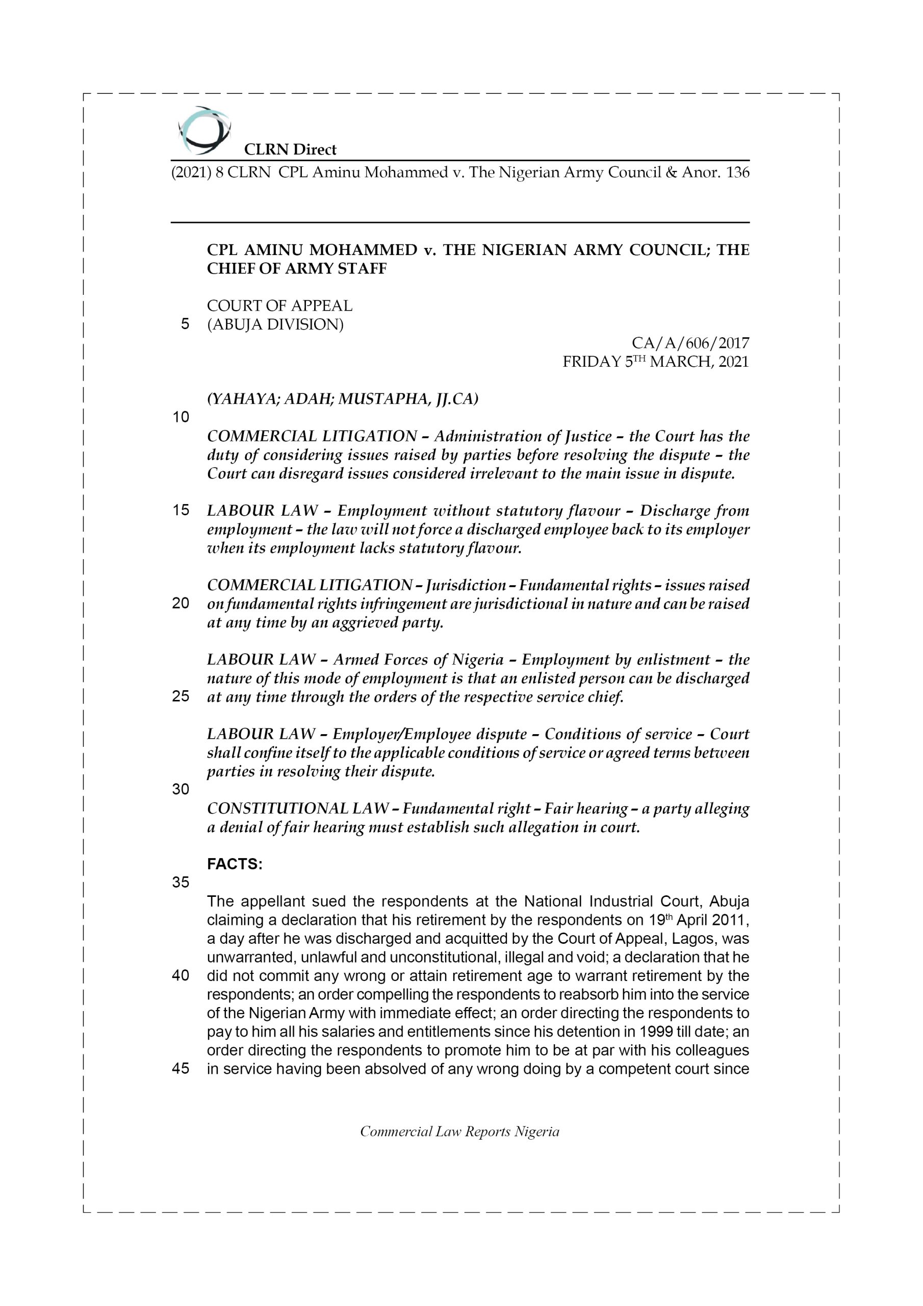 CPL AMINU MOHAMMED v. THE NIGERIAN ARMY COUNCIL & ANOR.