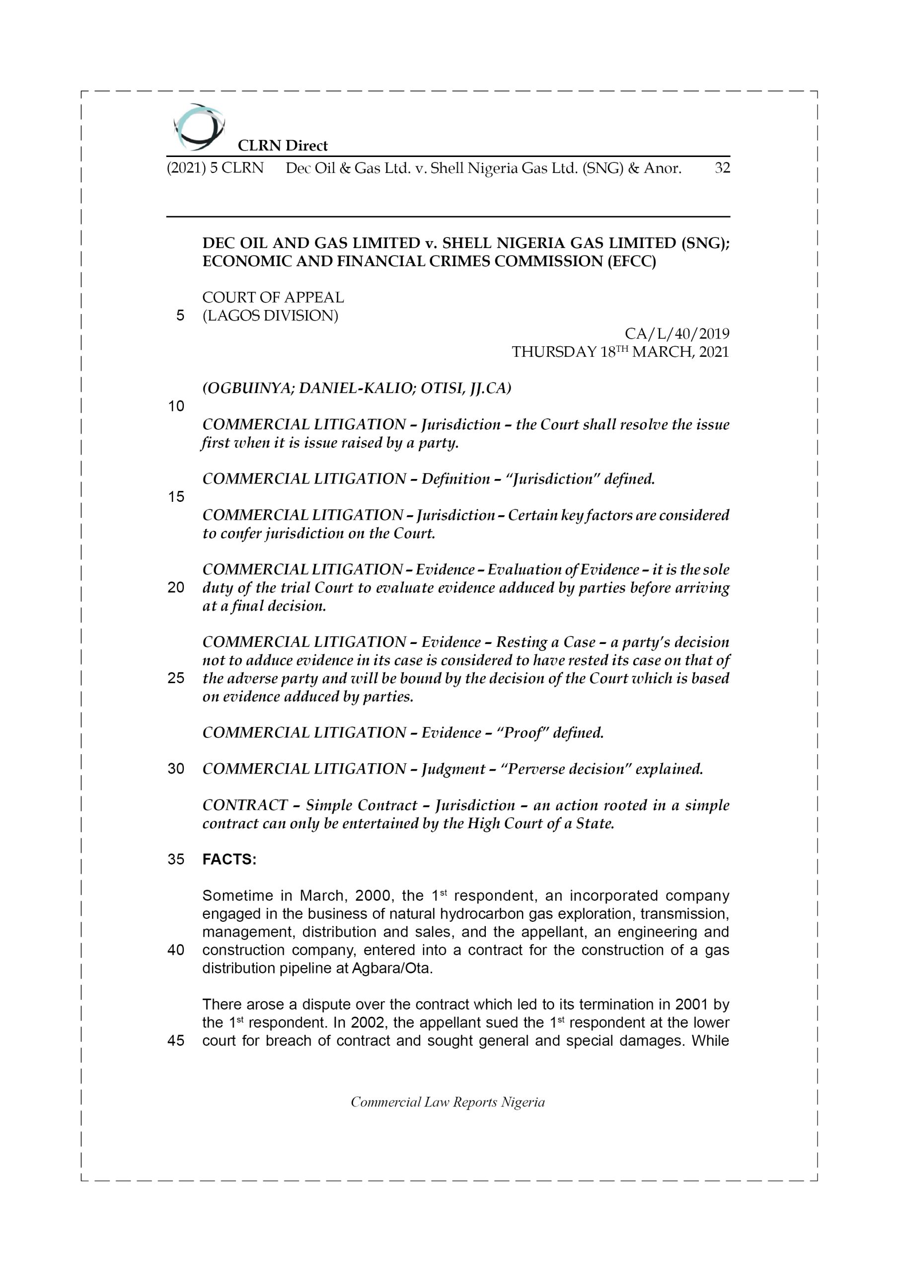 Sometime in March, 2000, the 1st respondent, an incorporated company engaged in the business of natural hydrocarbon gas exploration, transmission, management, distribution and sales, and the appellant, an engineering and construction company, entered into a contract for the construction of a gas distribution pipeline at Agbara/Ota.