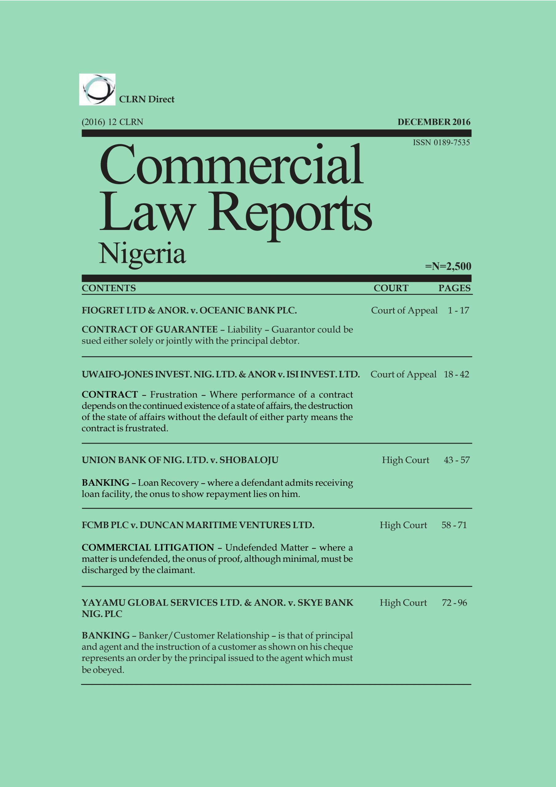 FIOGRET LTD & ANOR. v. OCEANIC BANK PLC., UWAIFO-JONES INVEST. NIG. LTD. & ANOR v. ISI INVEST. LTD., UNION BANK OF NIG. LTD. v. SHOBALOJU, FCMB PLC v. DUNCAN MARITIME VENTURES LTD., YAYAMU GLOBAL SERVICES LTD. & ANOR. v. SKYE BANK NIG. PLC,