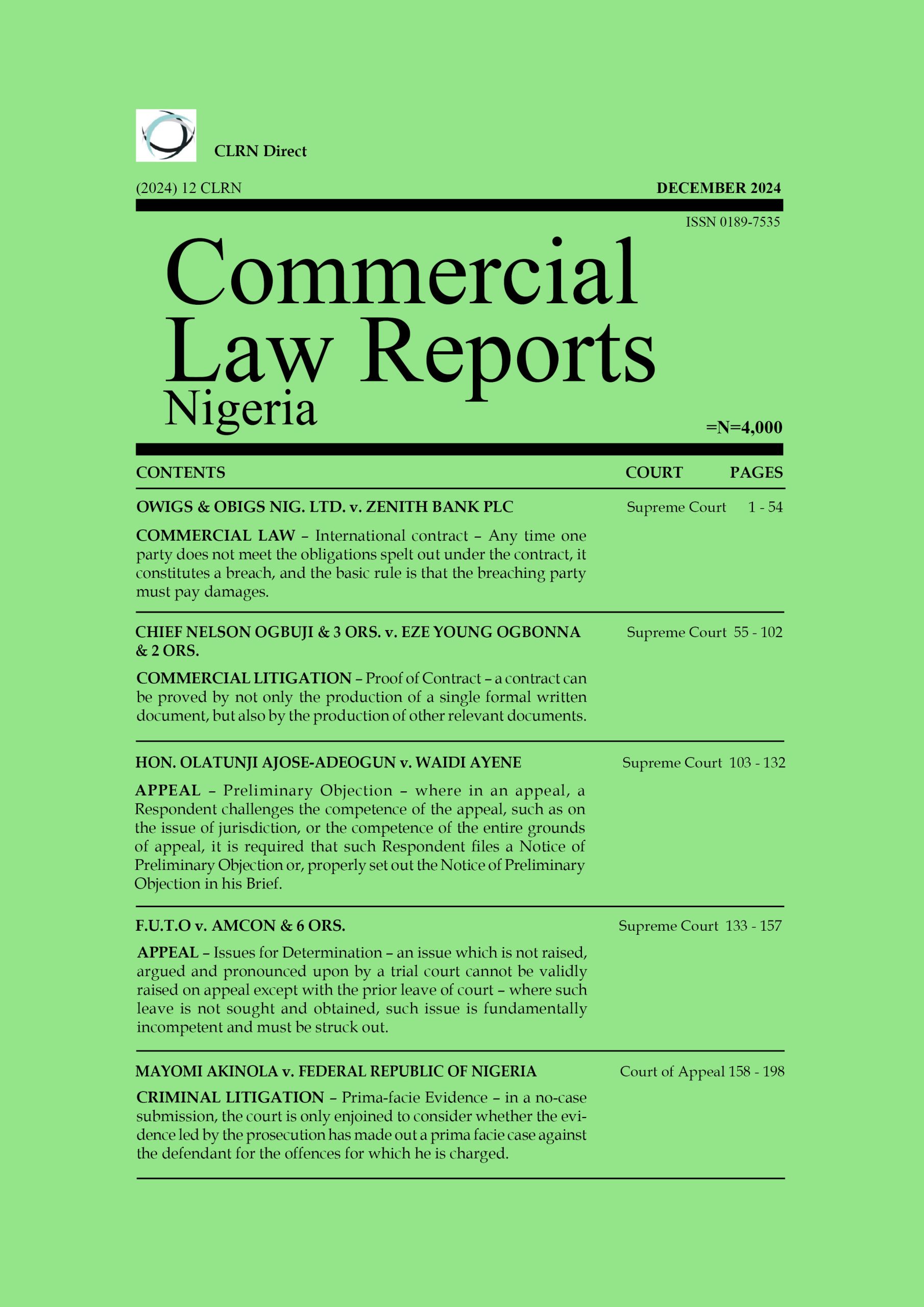 OWIGS & OBIGS Nig. Ltd. v. Zenith Bank Plc (2024) 12 CLRN 1,