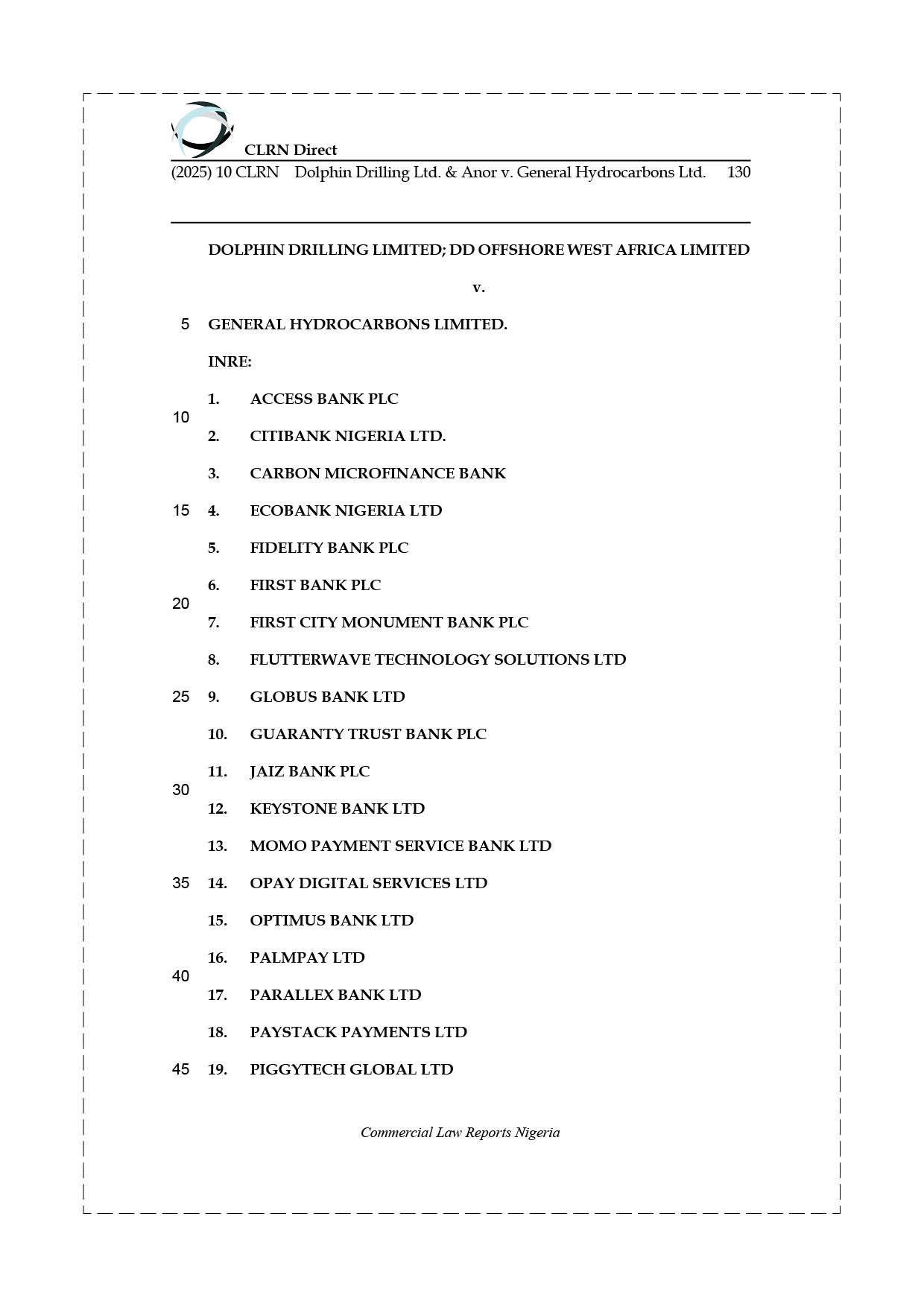 The applicant, and its Nigerian subsidiary, DD Off shore West Africa Limited, entered into a drilling contract with the respondent for the provision of off shore drilling services. Disputes arose between the parties regarding the performance of the contract and payment obligations, leading to arbitration in which Mr. Charles Adeyemi Candide-Johnson, SAN, acted as sole arbitrator. On 23 December 2024, the arbitral tribunal delivered a final award, and on 8 January 2025, issued an addendum to the award. The tribunal ordered GHL to pay the Applicants several sums including accrued interest and payments both in U.S. dollars and Nigerian naira. The Applicants fi led an Originating Motion before the Federal High Court in Lagos on 15 January 2025, seeking leave to enforce the arbitral award and for orders attaching the Respondent’s assets and funds across several financial institutions.