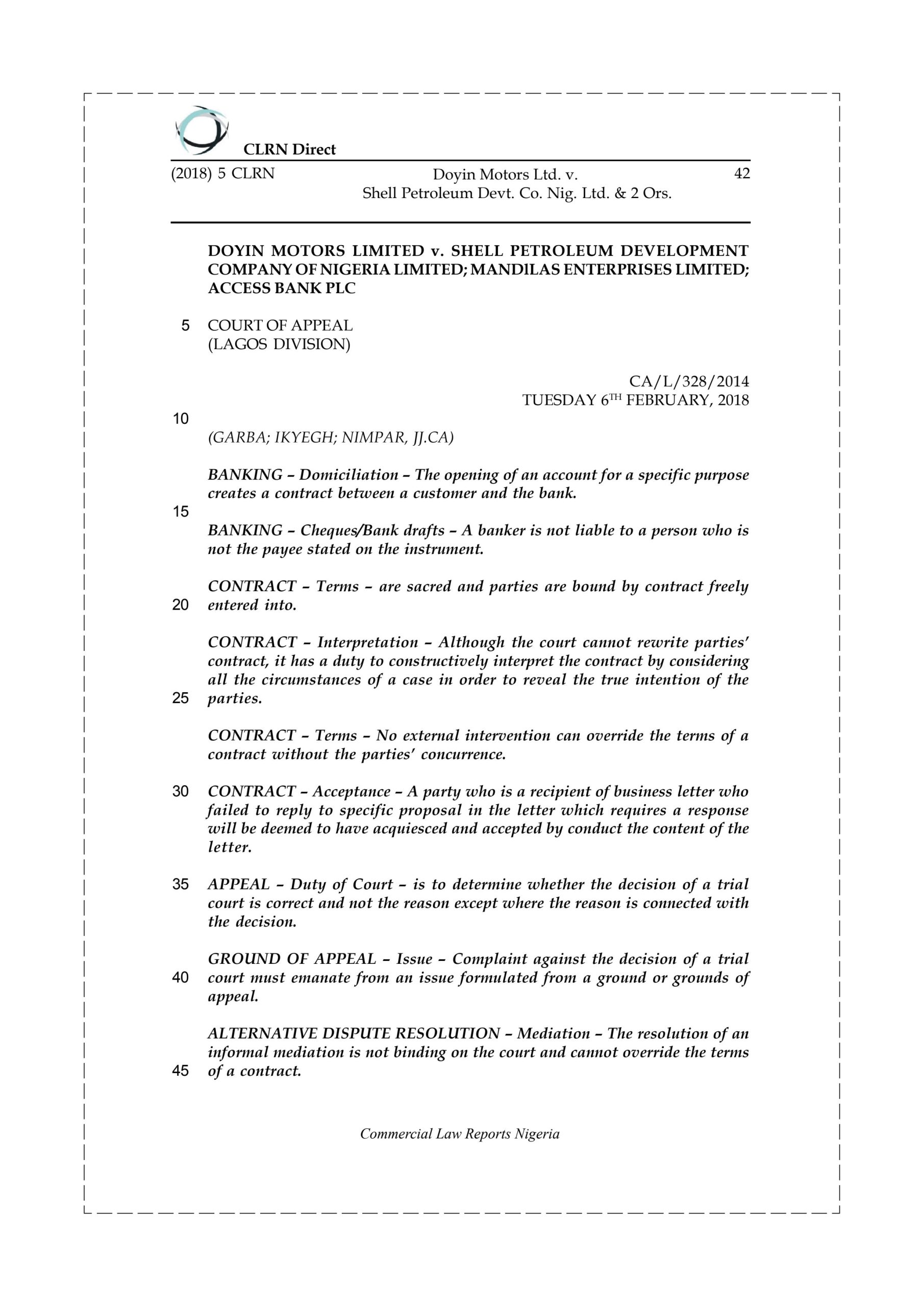 was aggrieved and filed a notice of appeal at the Court of Appeal, Lagos Division