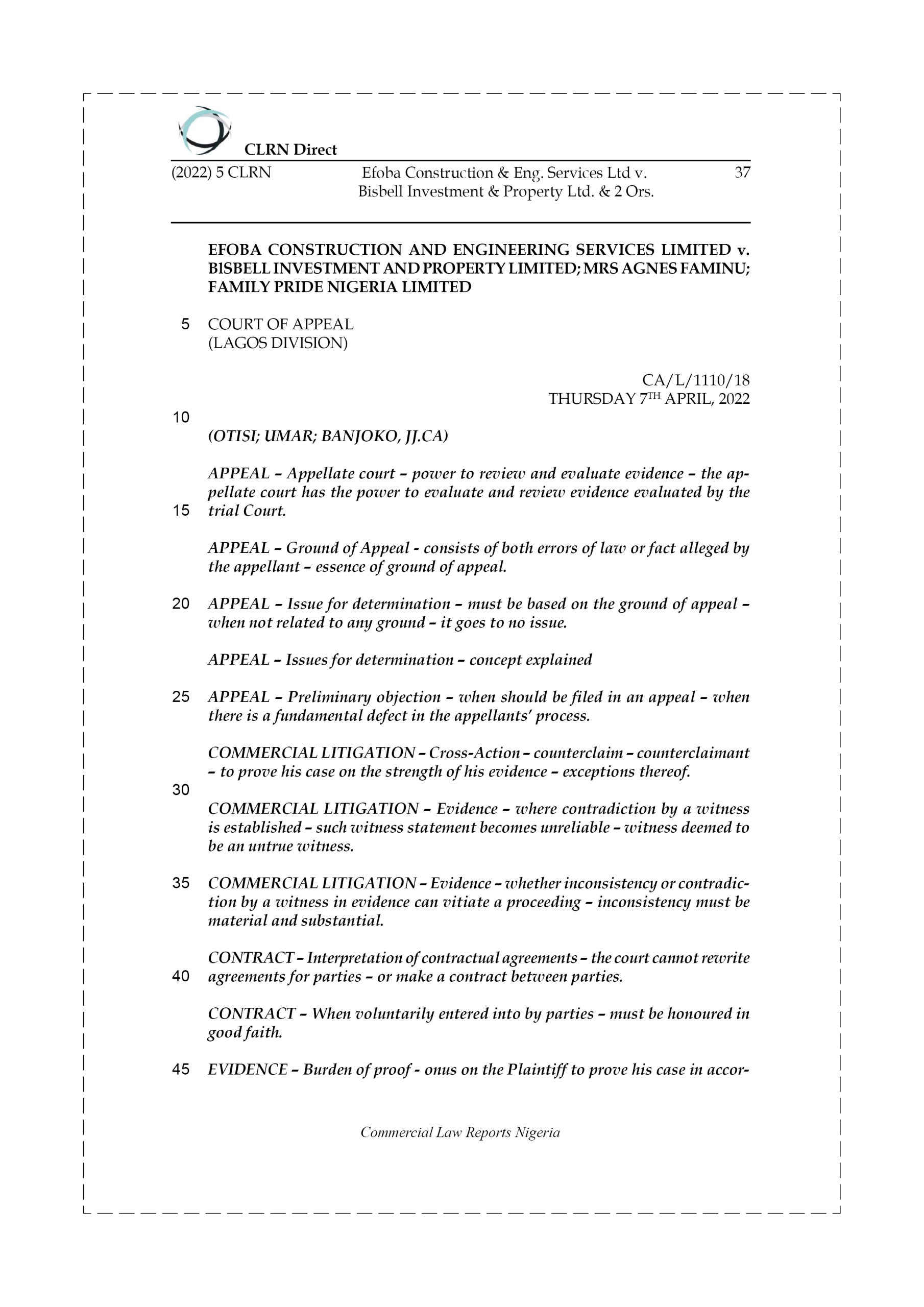 Glomite Nigeria Ltd v. Shellborn Marine Co. Nig. Ltd