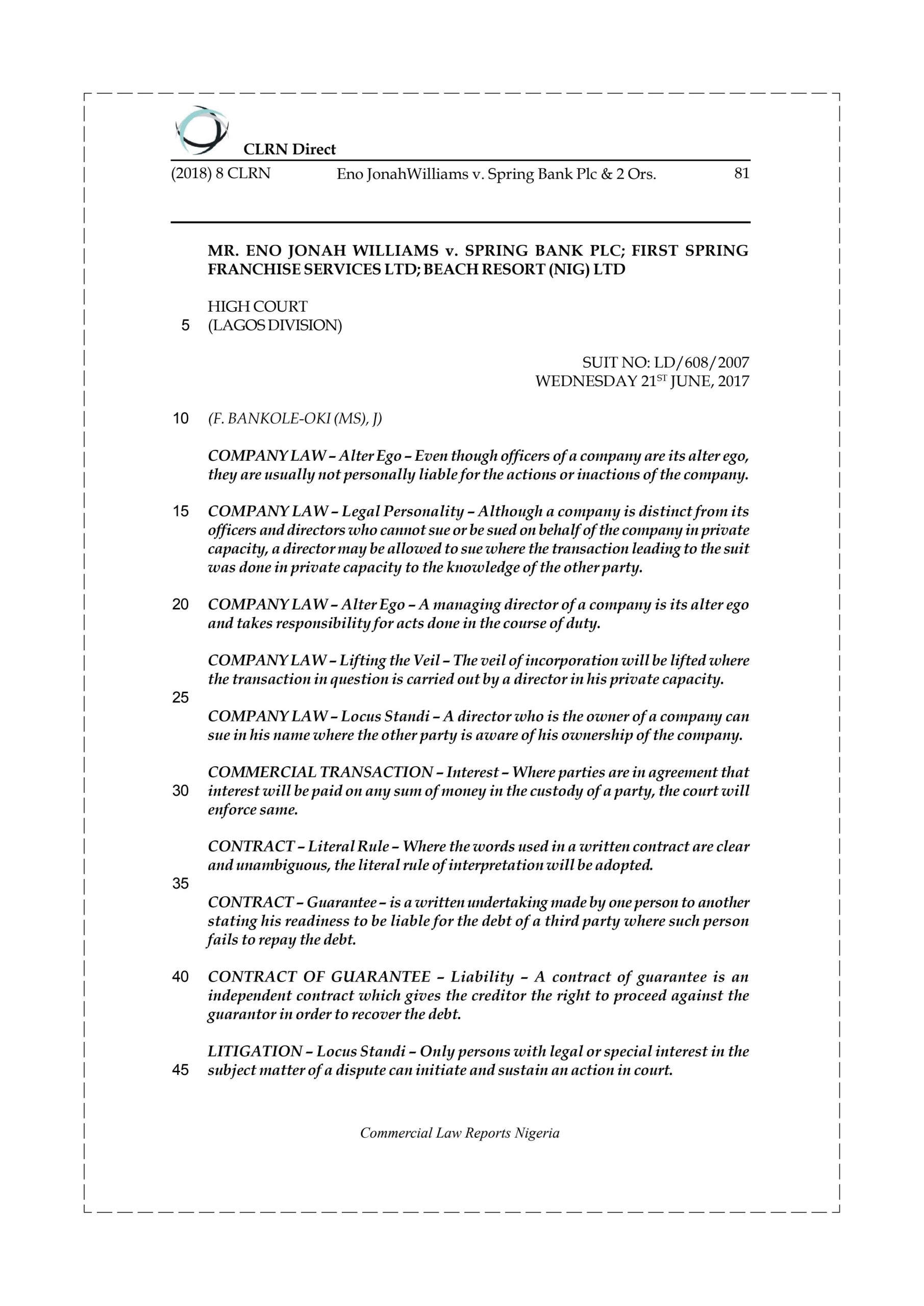 The claimant informed his lawyers who wrote the defendants requesting for the balance of N45,000,000.00 (Forty Five Million Naira) and the accrued interest stated above. The 2nd defendant replied the letter and agreed to pay the balance and the interest at a later date. Consequently, the 2nd defendant credited the claimant’s account with N50,000,000.00 (Fifty Million Naira) and declined making any further payments. After waiting for the interest to be paid to no avail, the claimant filed a suit against the defendants at the High Court of Lagos State claiming the accrued interest and the cost of the action.