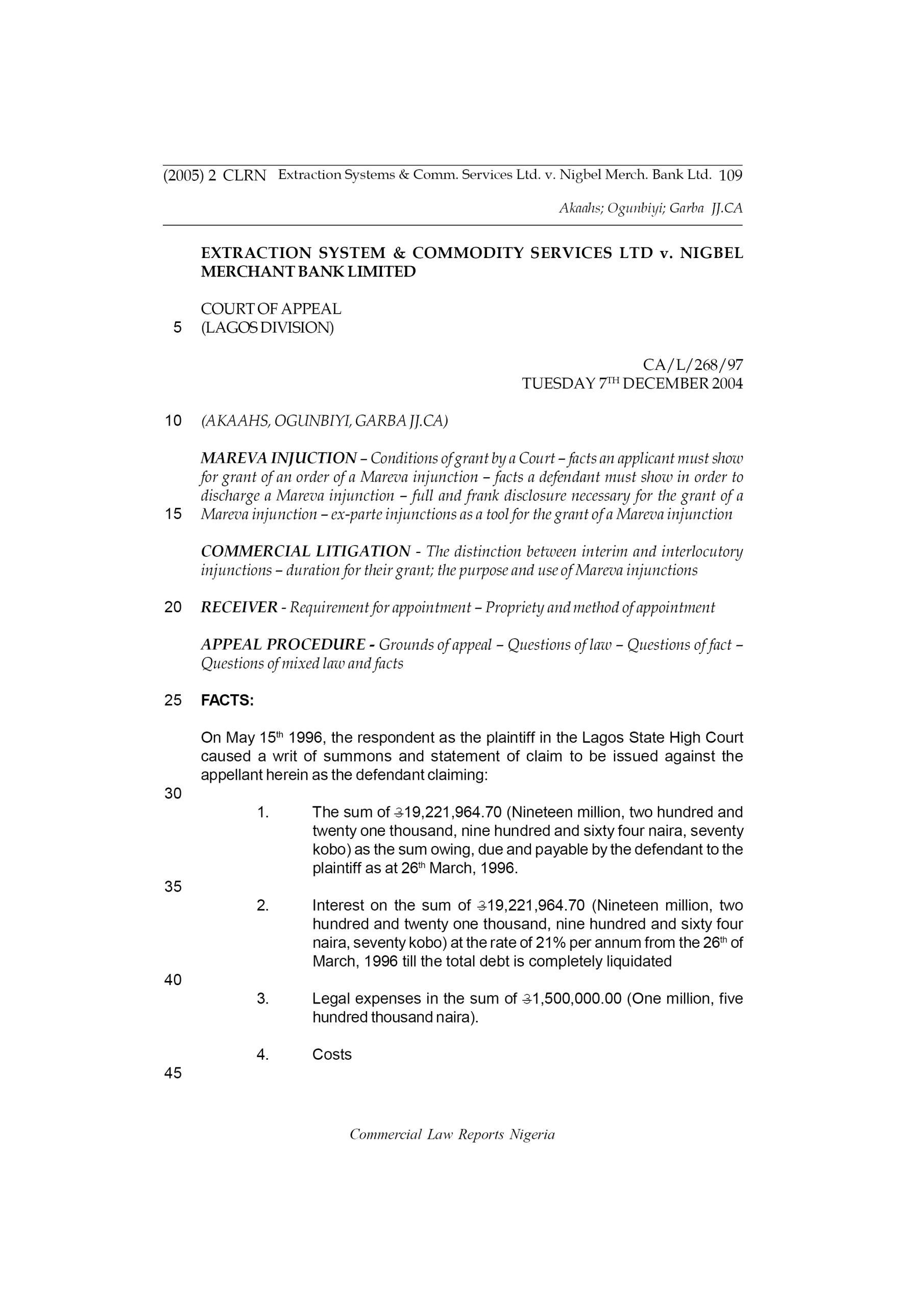 On May 15th 1996, the respondent as the plaintiff in the Lagos State High Court caused a writ of summons and statement of claim to be issued against the appellant herein as the defendant claiming: