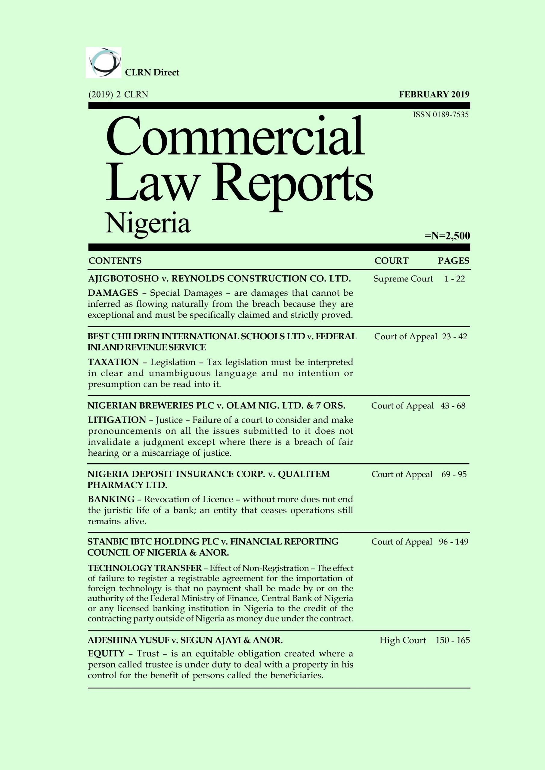 Nigerian Breweries Plc v. Olam Nig. Ltd. & 7 Ors. (2019) 2 CLRN 43,