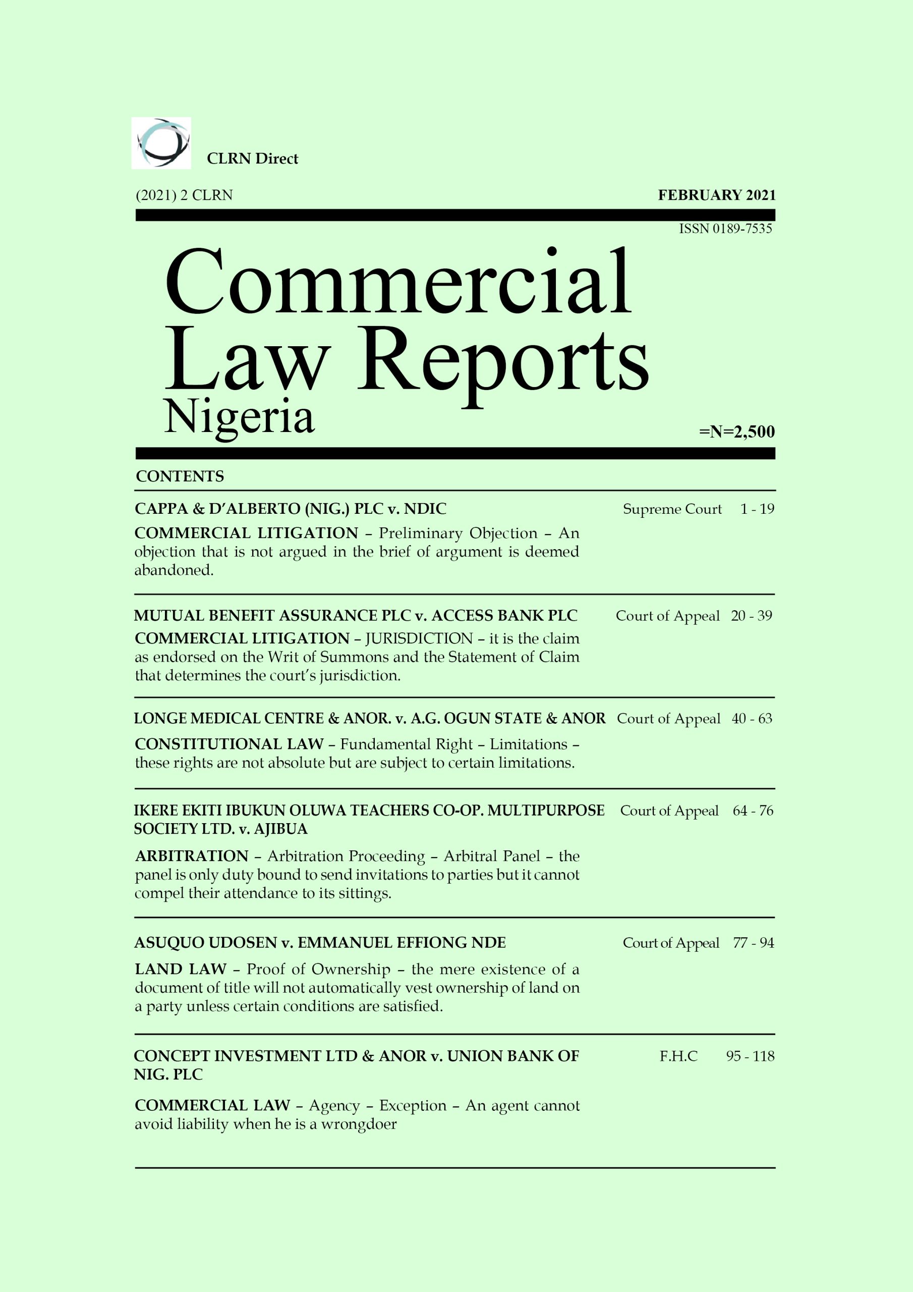 Mutual Benefit Assurance Plc v. Access Bank Plc (2021) 2 CLRN 20,