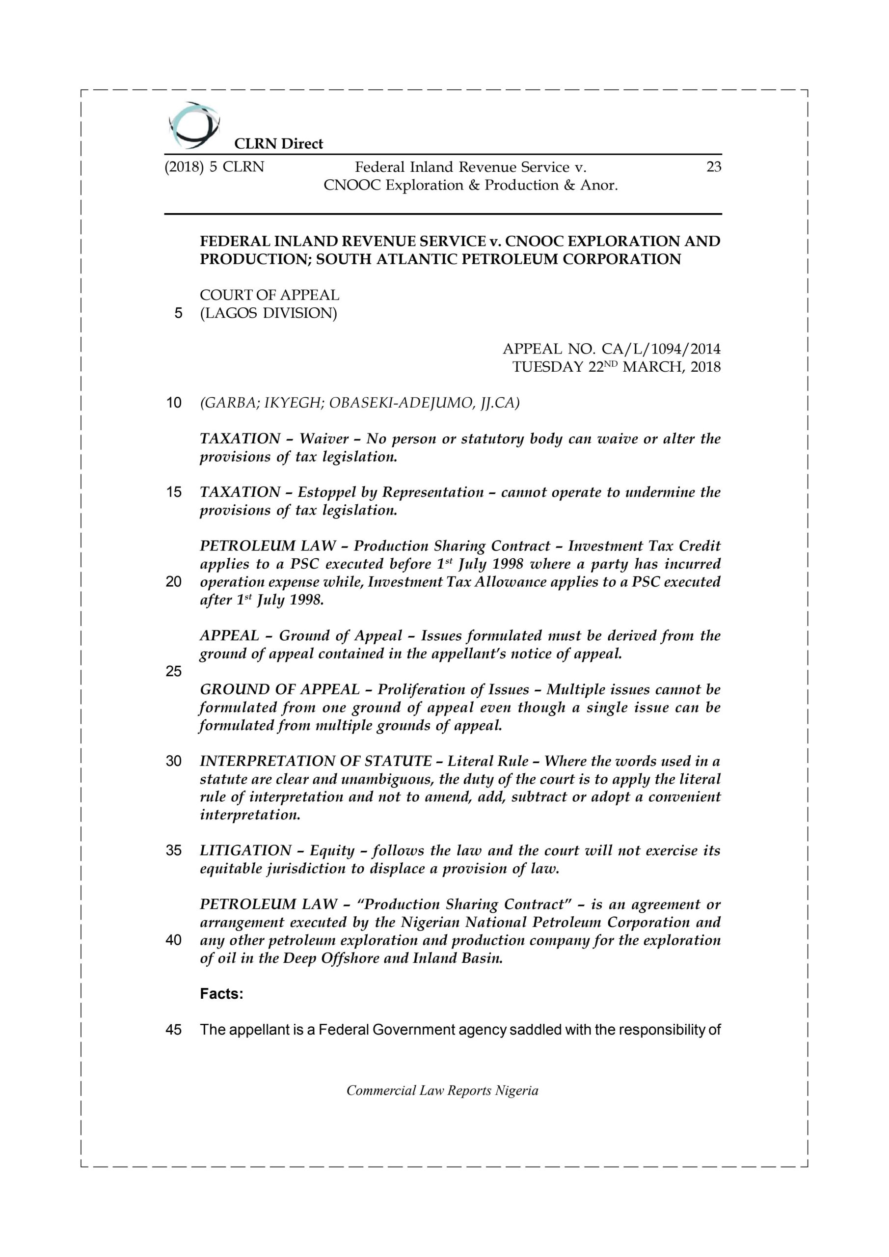 Nigeria. The 2nd respondent was a holder and beneficiary of Oil Prospecting