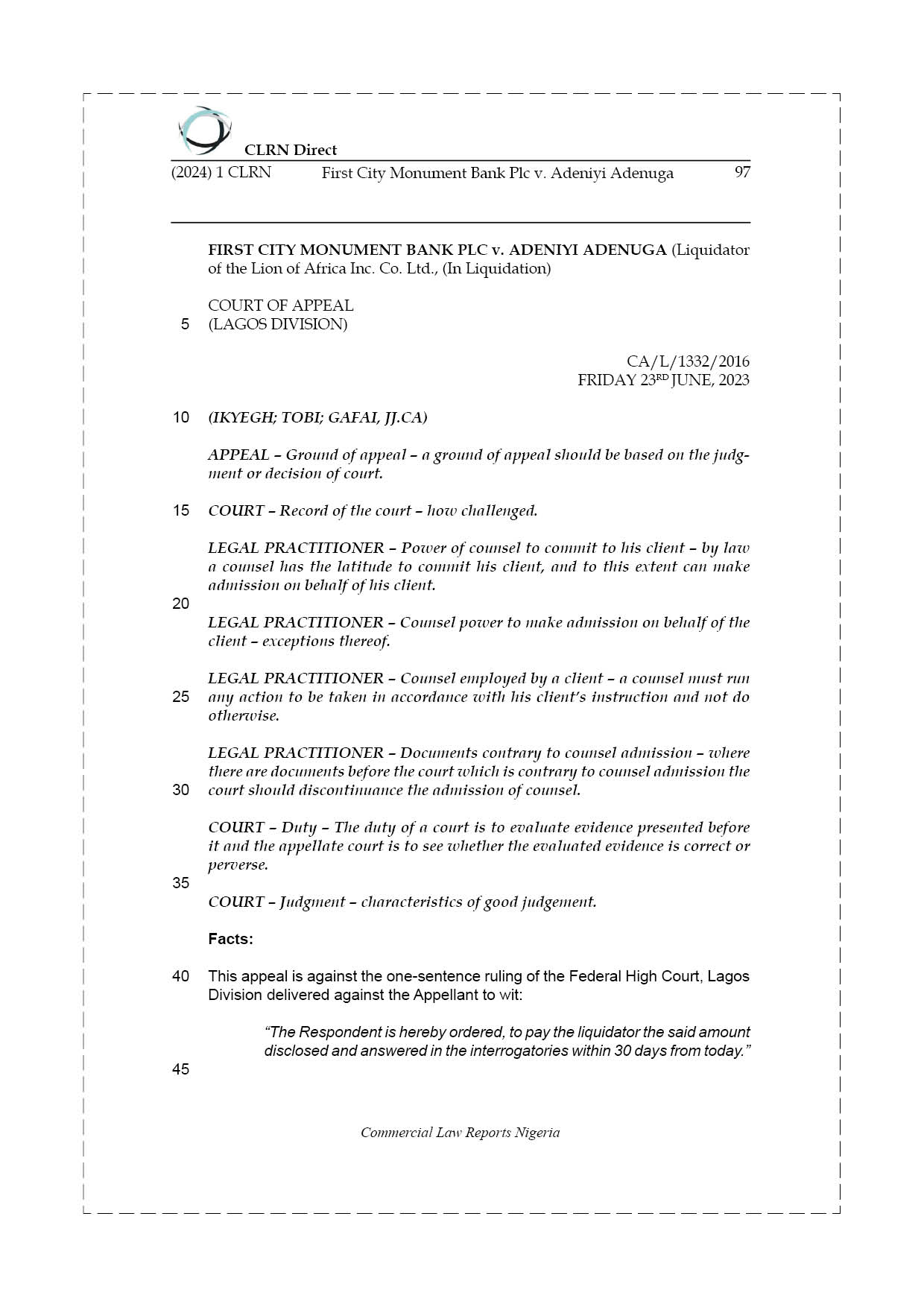 FIRST CITY MONUMENT BANK PLC v. ADENIYI ADENUGA
