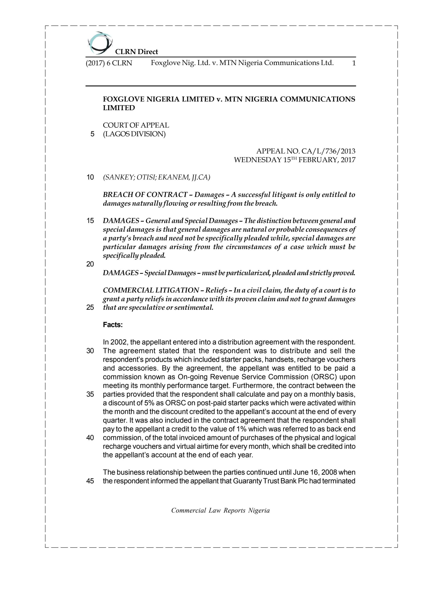 Foxglove Nig. Ltd. v. MTN Nigeria Communications Ltd.