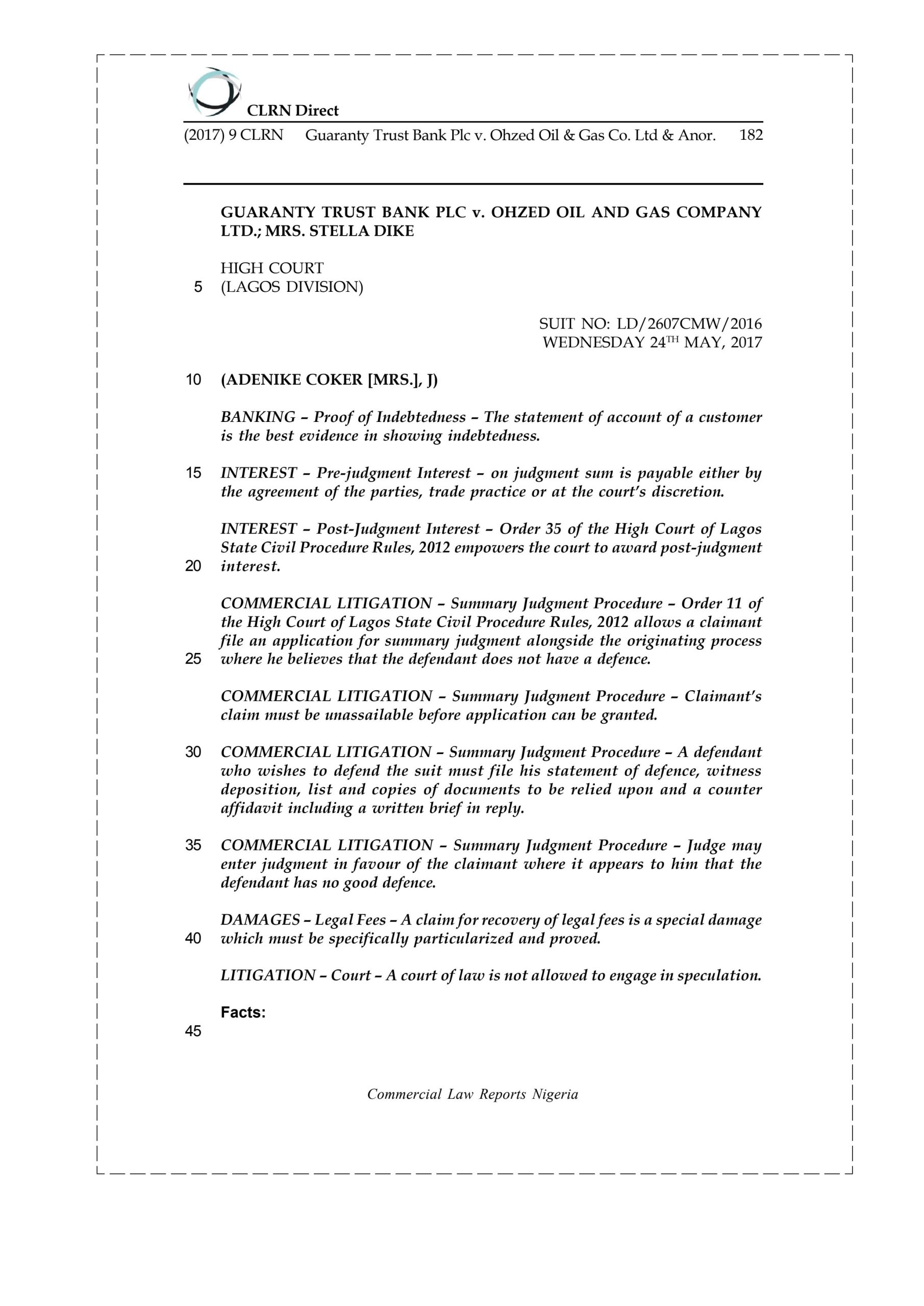 Guaranty Trust Bank Plc v. Ohzed Oil & Gas Co. Ltd & Anor.