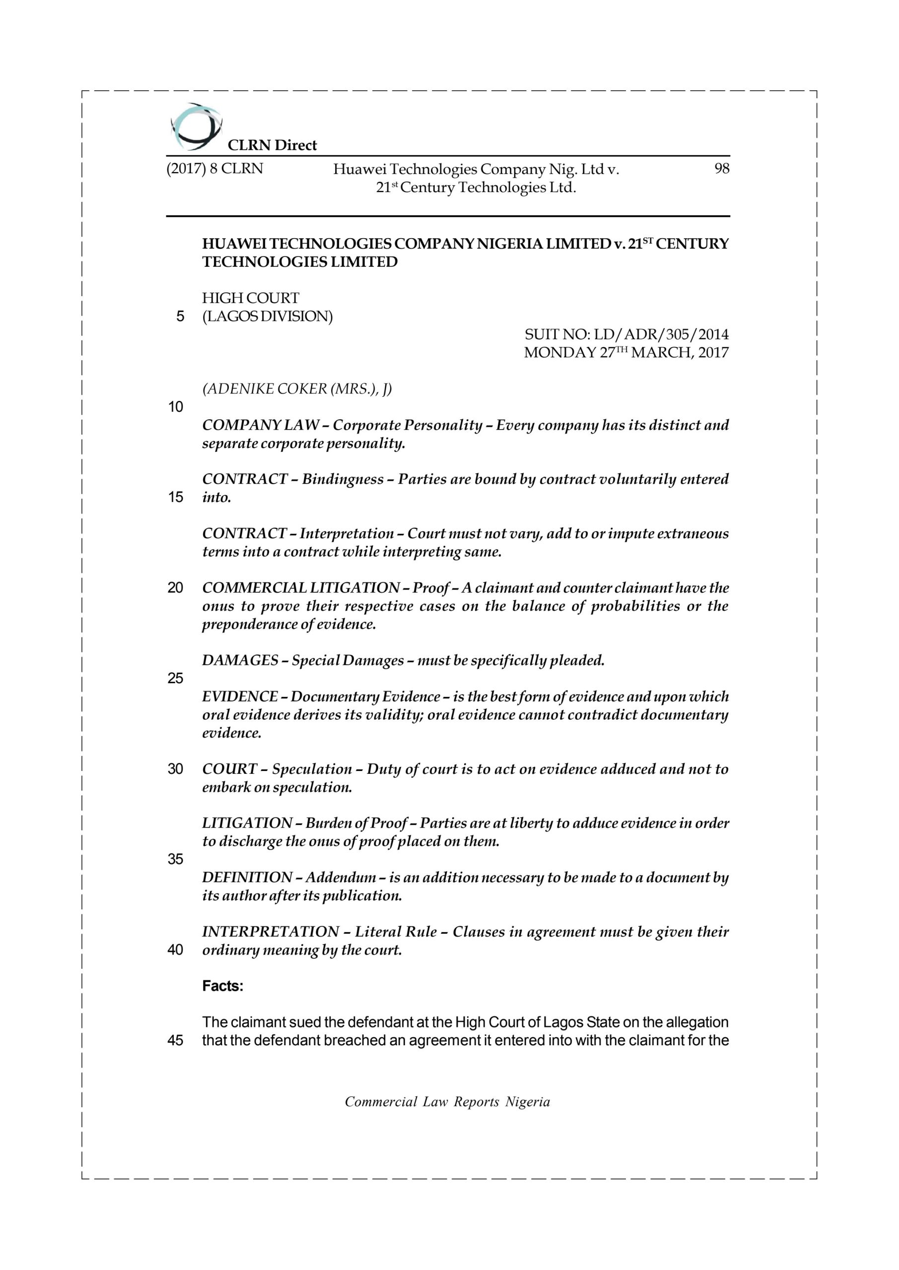 The claimant sued the defendant at the High Court of Lagos State on the allegation