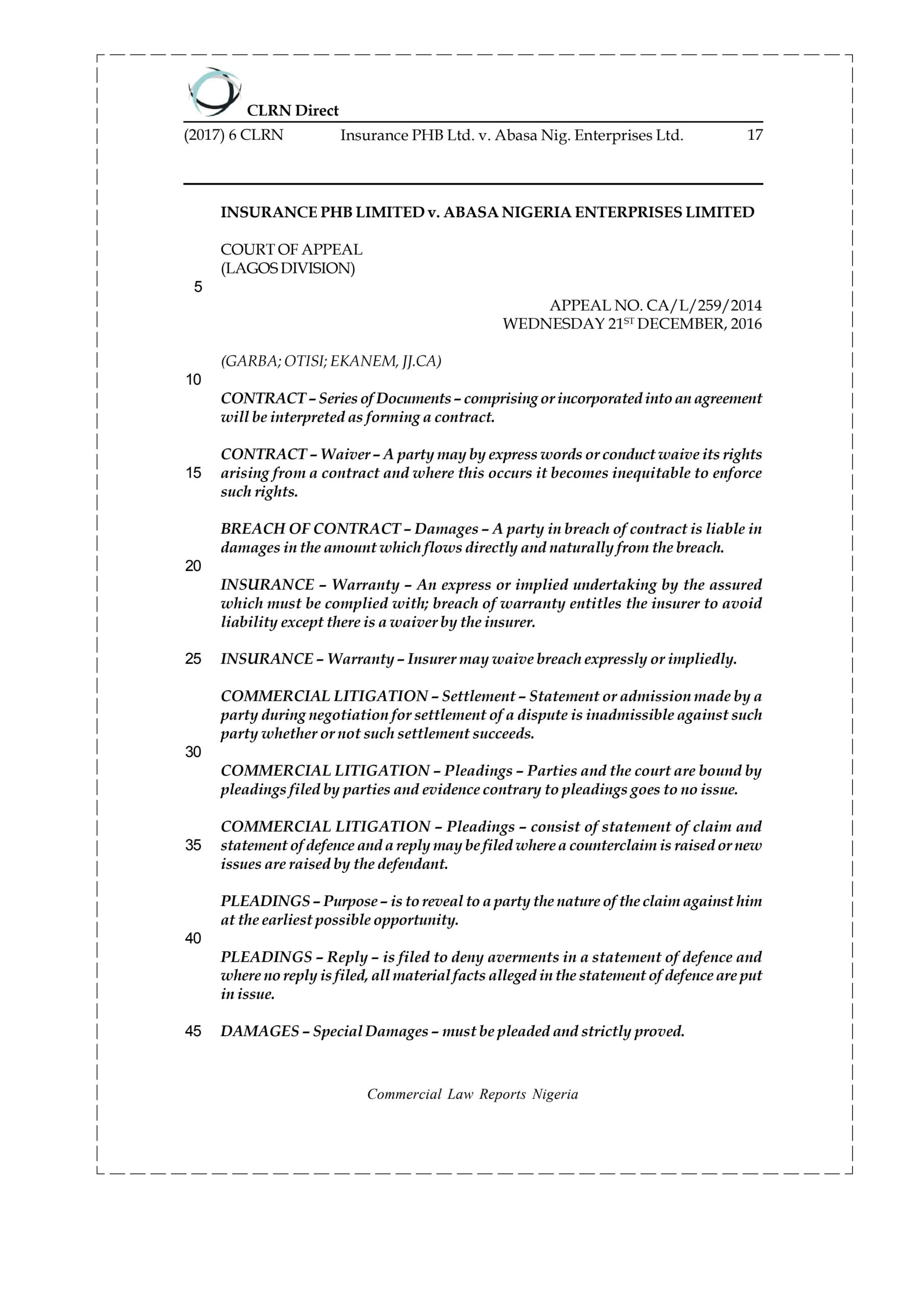 sued the appellant at the Federal High Court, Lagos Division for indemnity for the