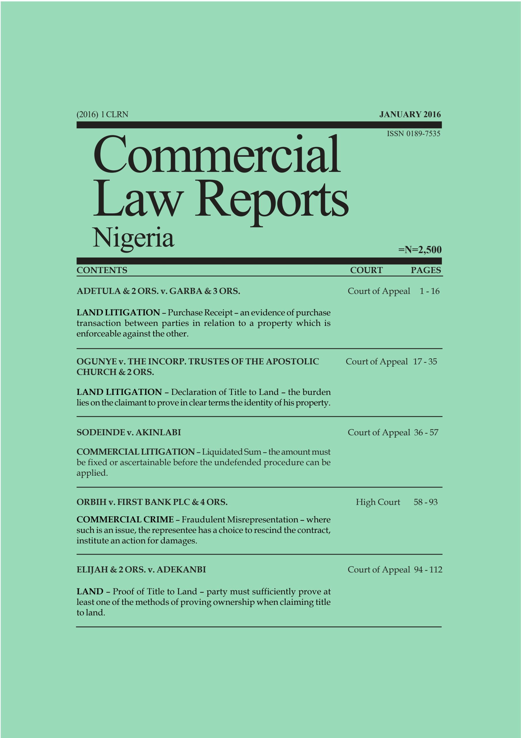 Adetula & 2 Ors. v. Garba & 3 Ors. (2016) 1 CLRN 1,