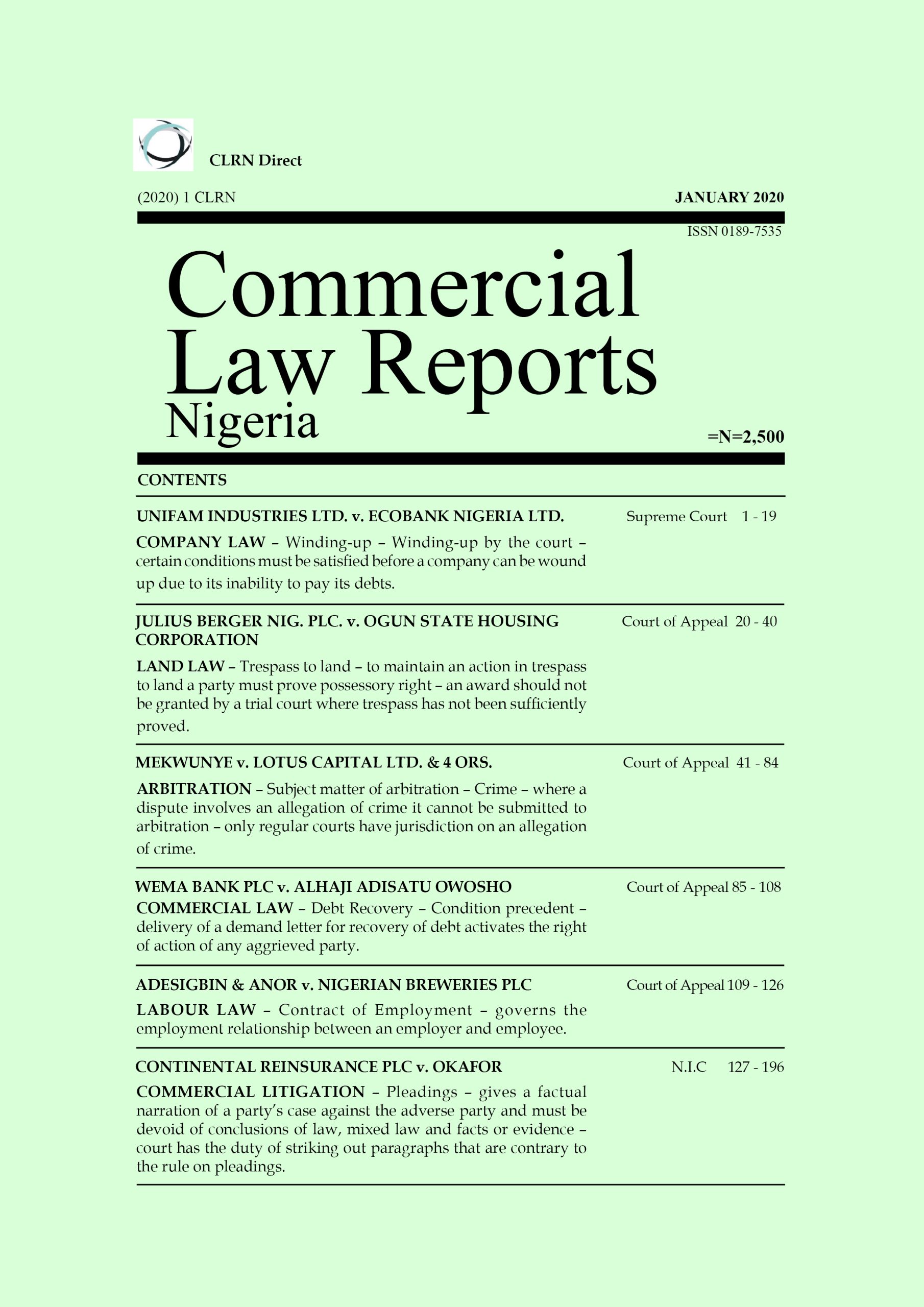 Unifam Industries Ltd. v. Ecobank Nigeria Ltd. (2020) 1 CLRN 1,