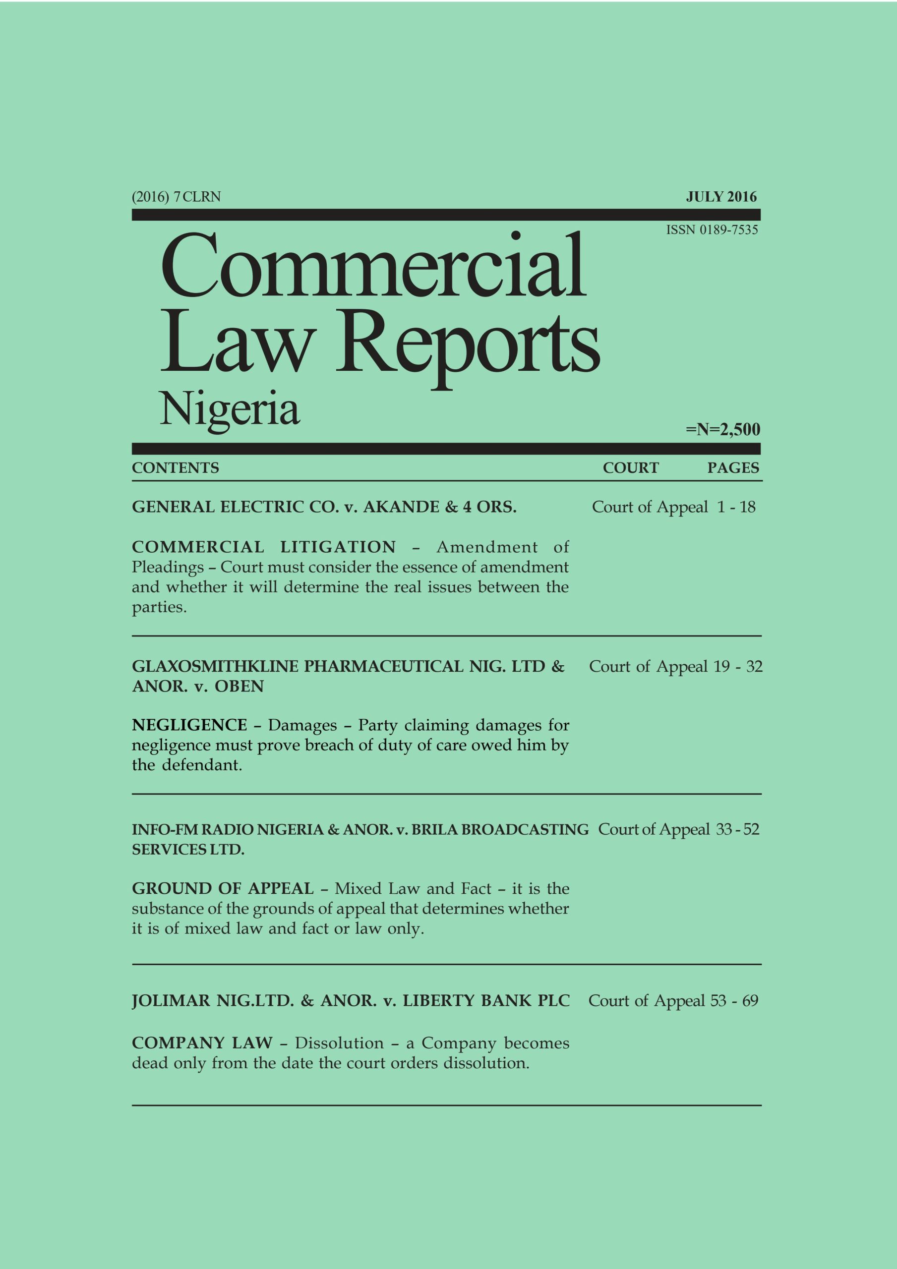 GENERAL ELECTRIC CO. v. AKANDE & 4 ORS., GLAXOSMITHKLINE PHARMACEUTICAL NIG. LTD & ANOR. v. OBEN, INFO-FM RADIO NIGERIA & ANOR. v. BRILA BROADCASTING SERVICES LTD., JOLIMAR NIG.LTD. & ANOR. v. LIBERTY BANK PLC,