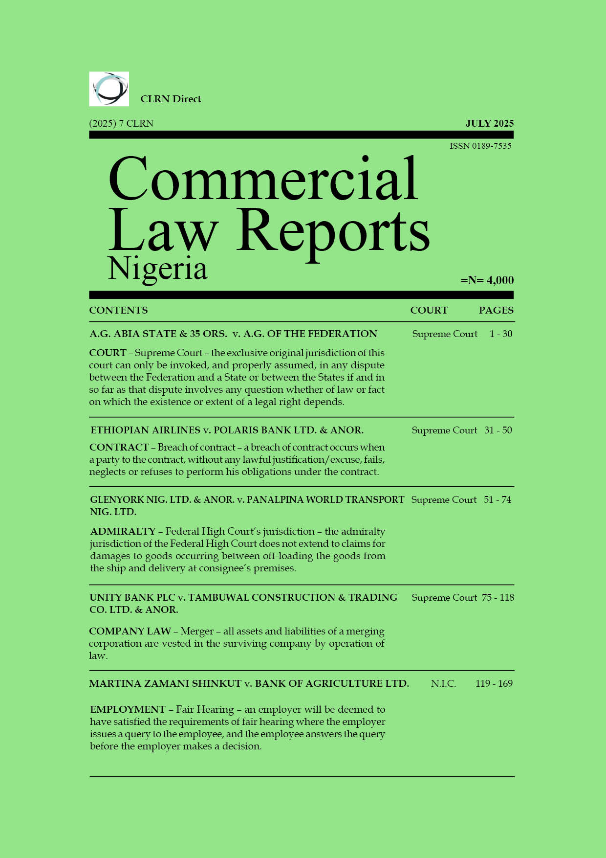 Ethiopian Airlines v. Polaris Bank Ltd. & Anor. (2025) 7 CLRN 31