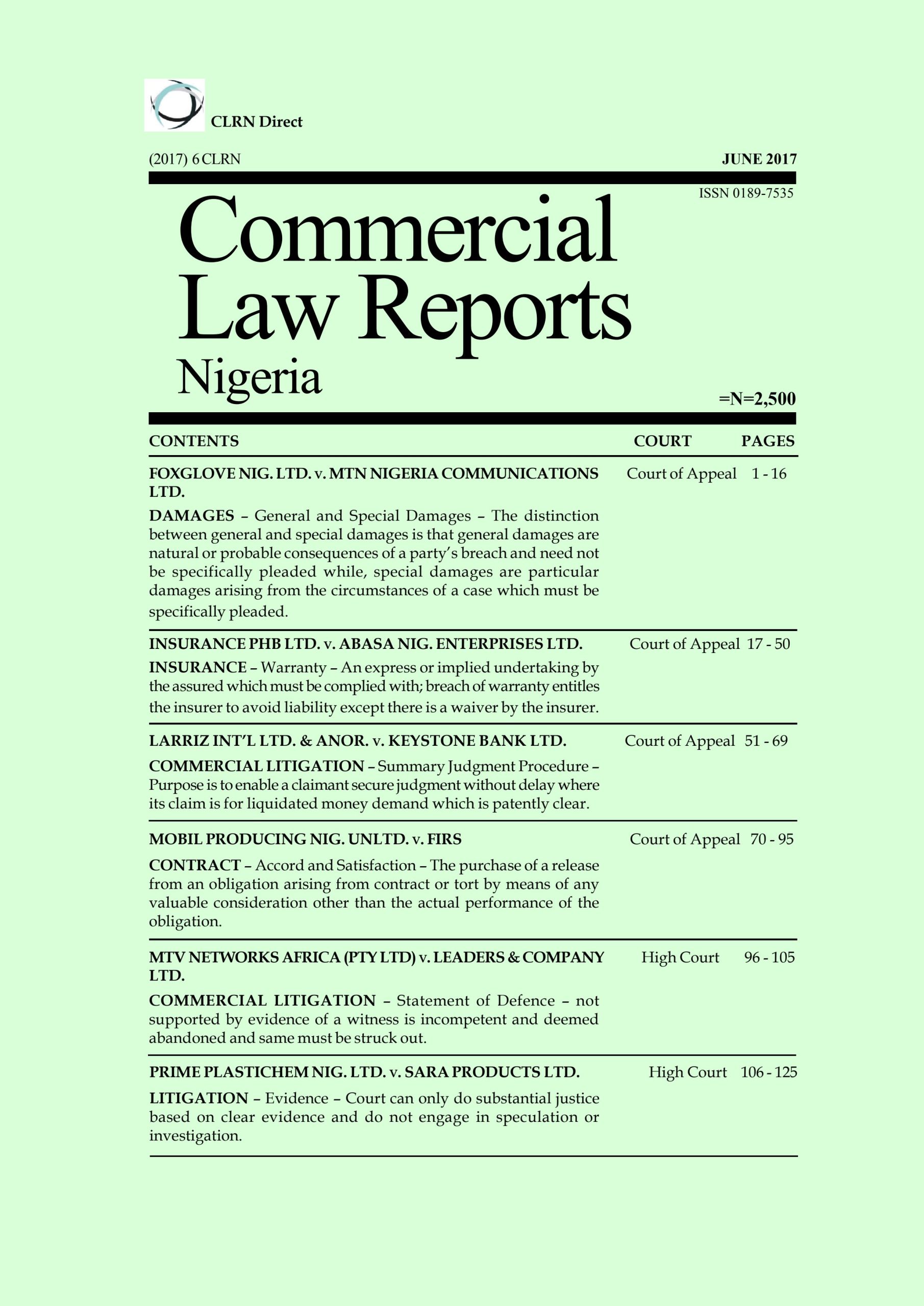 Foxglove Nig. Ltd. v. MTN Nigeria Communications Ltd. (2017) 6 CLRN 1,