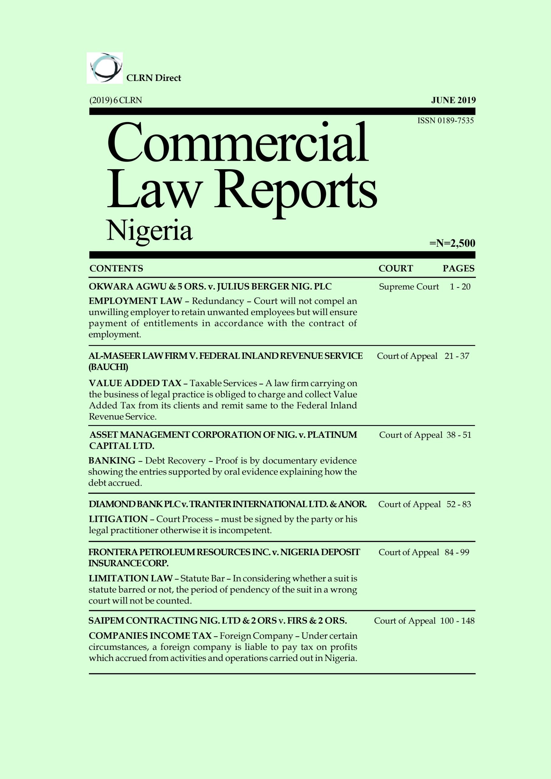 Al-Maseer Law Firm v. Federal Inland Revenue Service (Bauchi) (2019) 6 CLRN 21,