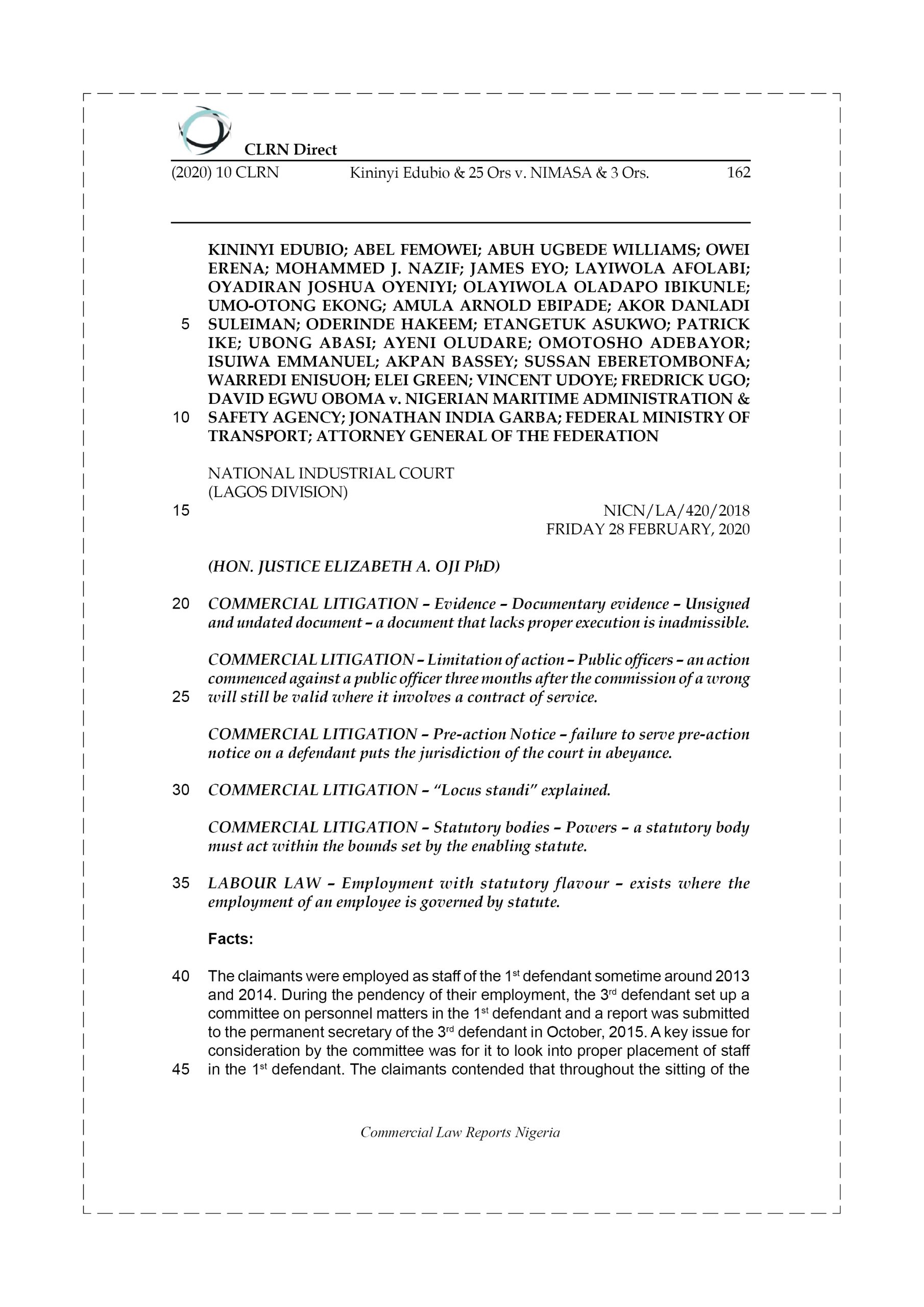 The claimants were employed as staff of the 1st defendant sometime around 2013 and 2014. During the pendency of their employment, the 3rd defendant set up a committee on personnel matters in the 1st defendant and a report was submitted to the permanent secretary of the 3rd defendant in October, 2015. A key issue for consideration by the committee was for it to look into proper placement of staff in the 1st defendant. The claimants contended that throughout the sitting of the committee, none of them was given the opportunity to state their views in the investigation by the committee.
