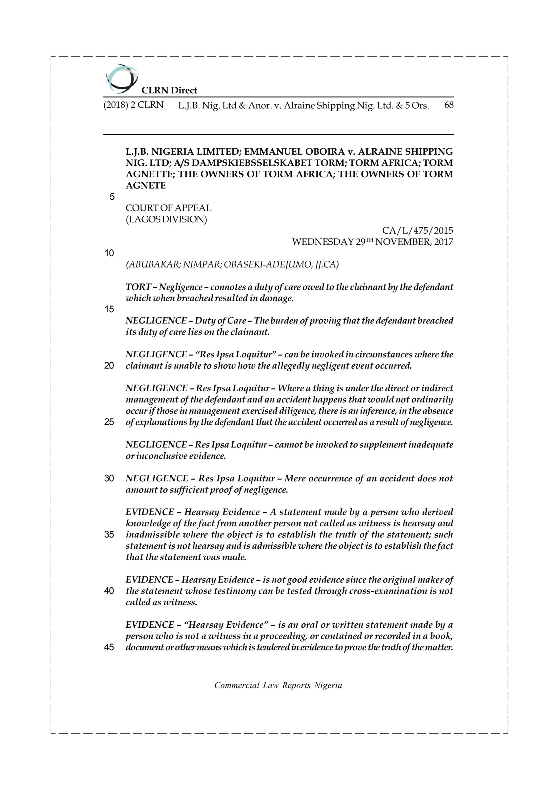 In compliance with the directive of the respondents, the appellants through their solicitors sent the bills of lading and receipts to the 1st respondent’s claims department on the 26th April, 2002. Dissatisfied with the manner in which the respondents handled the matter, the appellants on the 28th June, 2002 filed their suit against the respondents. After hearing the matter, the trial judge dismissed the claims of the appellants by relying on the evidence of the respondents that the matter had been litigated before a court in Liberia, and that the court gave judgment in favour of the respondents. Even though the appellants were not parties to the matter litigated in the Liberian court, the trial judge relied heavily on the exhibit