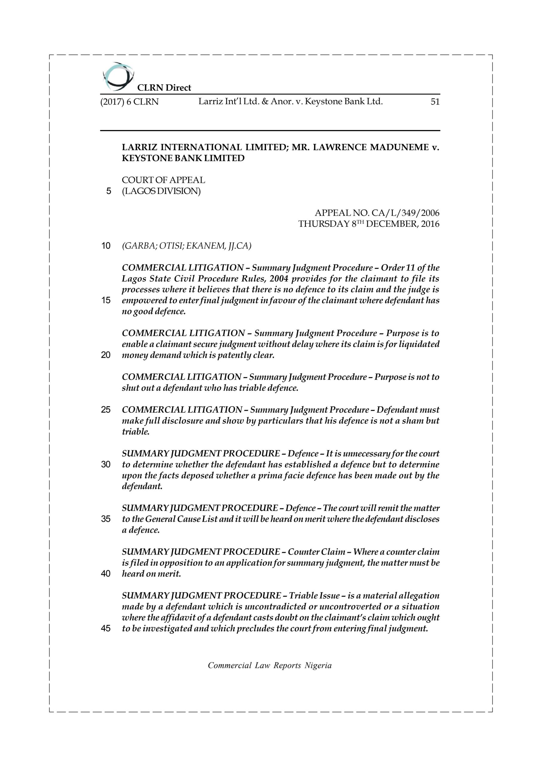 Larriz Int’l Ltd. & Anor. v. Keystone Bank Ltd.