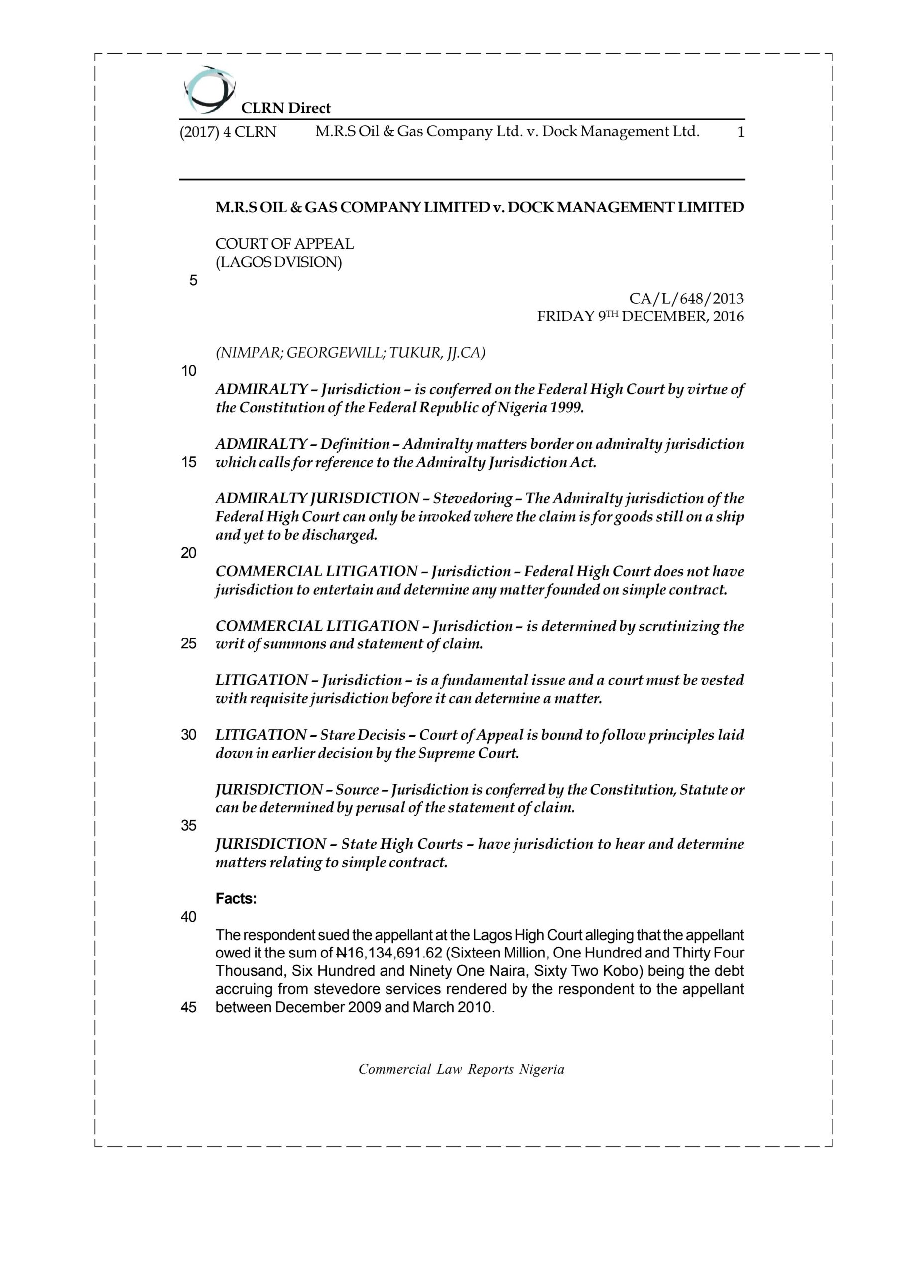 The respondent sued the appellant at the Lagos High Court alleging that the appellant