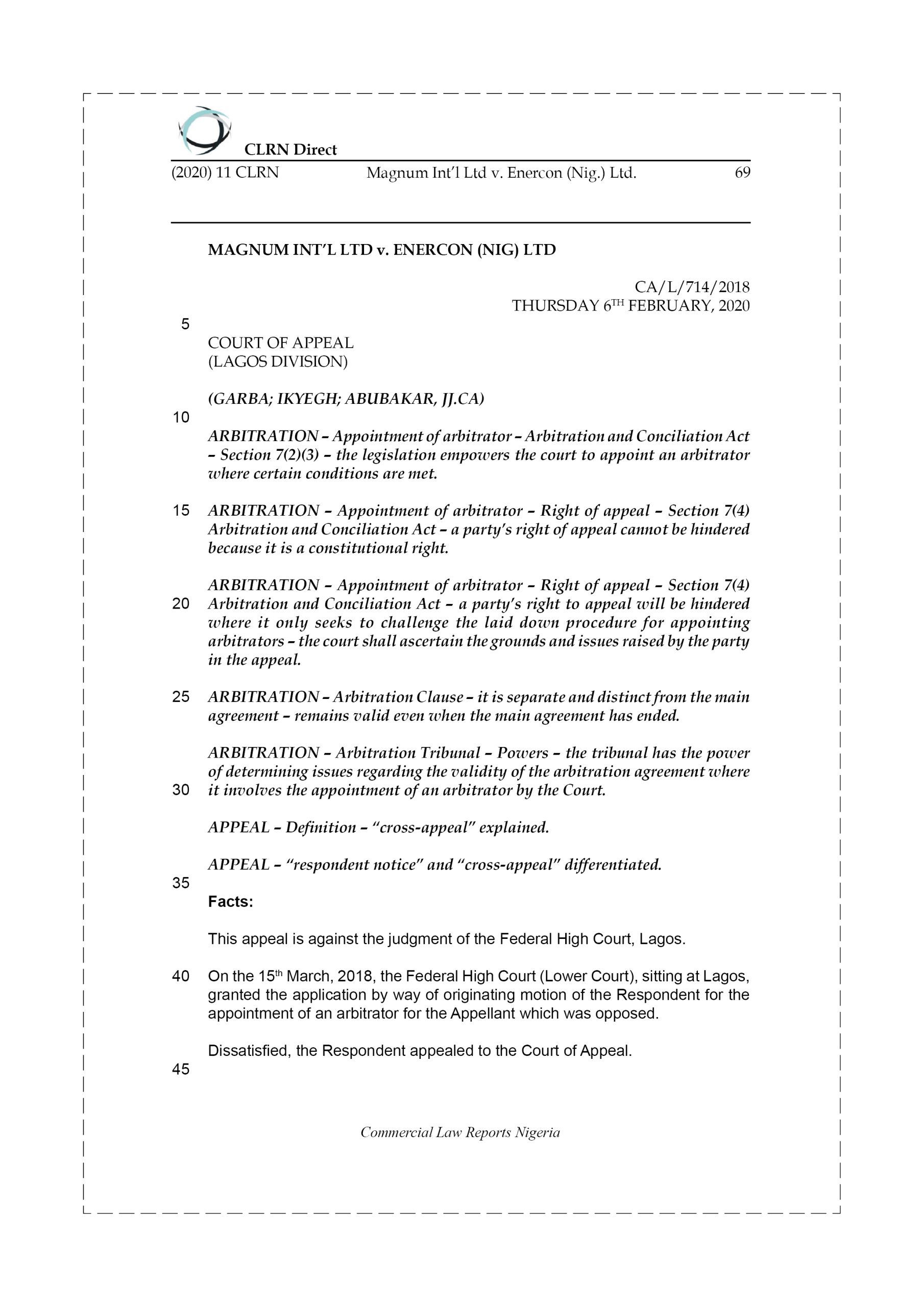 Brawal Shipping Nig. Ltd v. Aphrodite Nig. Ltd