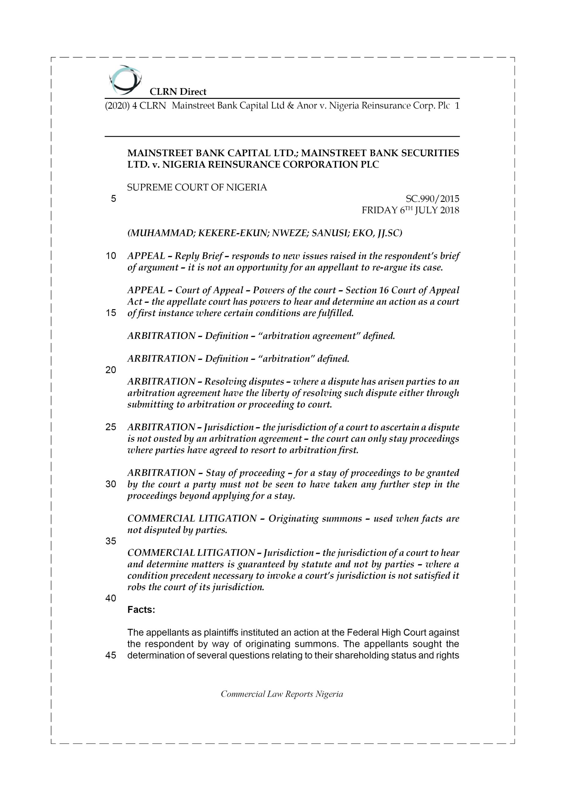The appellants as plaintiffs instituted an action at the Federal High Court against the respondent by way of originating summons. The appellants sought the determination of several questions relating to their shareholding status and rights in the respondent, and their right to participate in the management and meetings of the respondent. Upon being served with the summons, the respondent entered a conditional appearance to the suit and subsequently filed a preliminary objection challenging the jurisdiction of the court to entertain the suit.