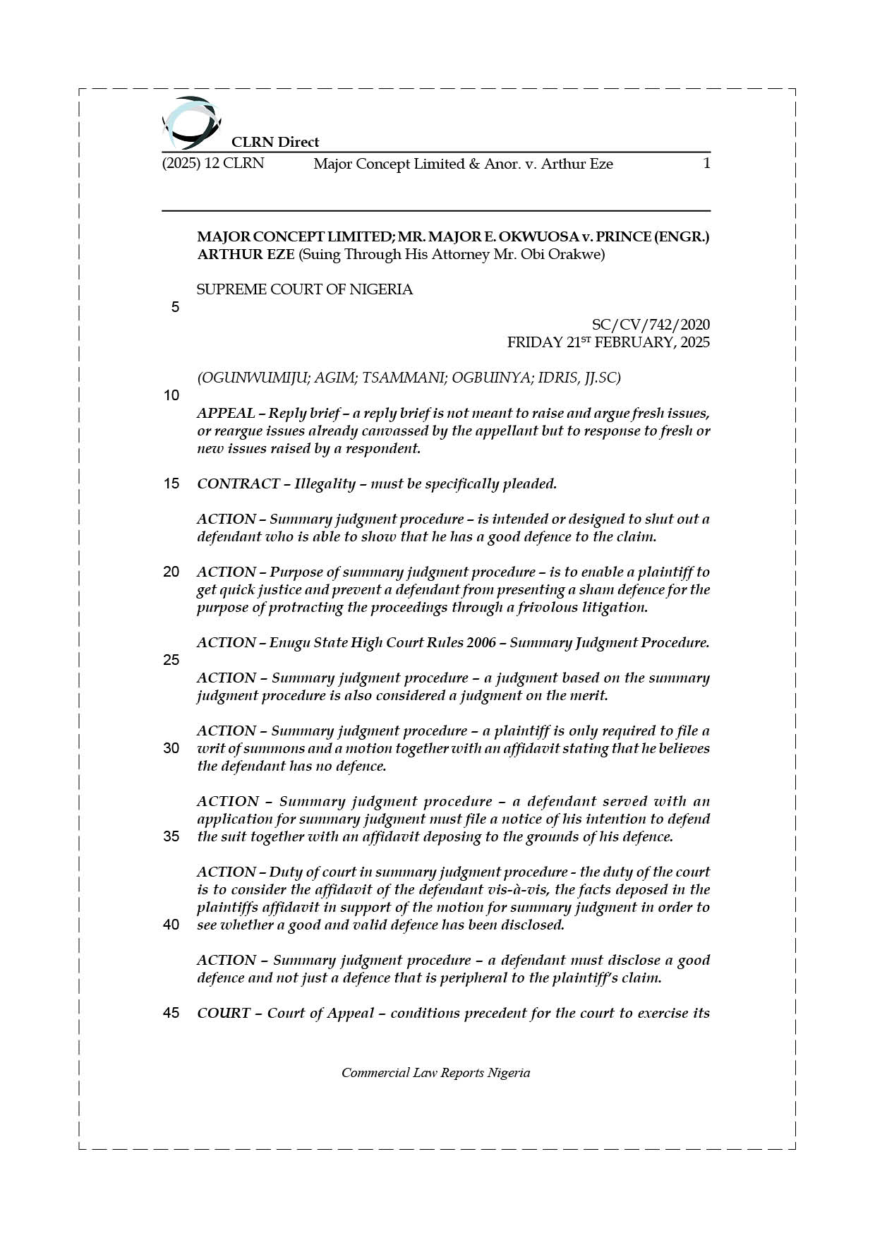 MAJOR CONCEPT LIMITED & ANOR. v. ARTHUR EZE