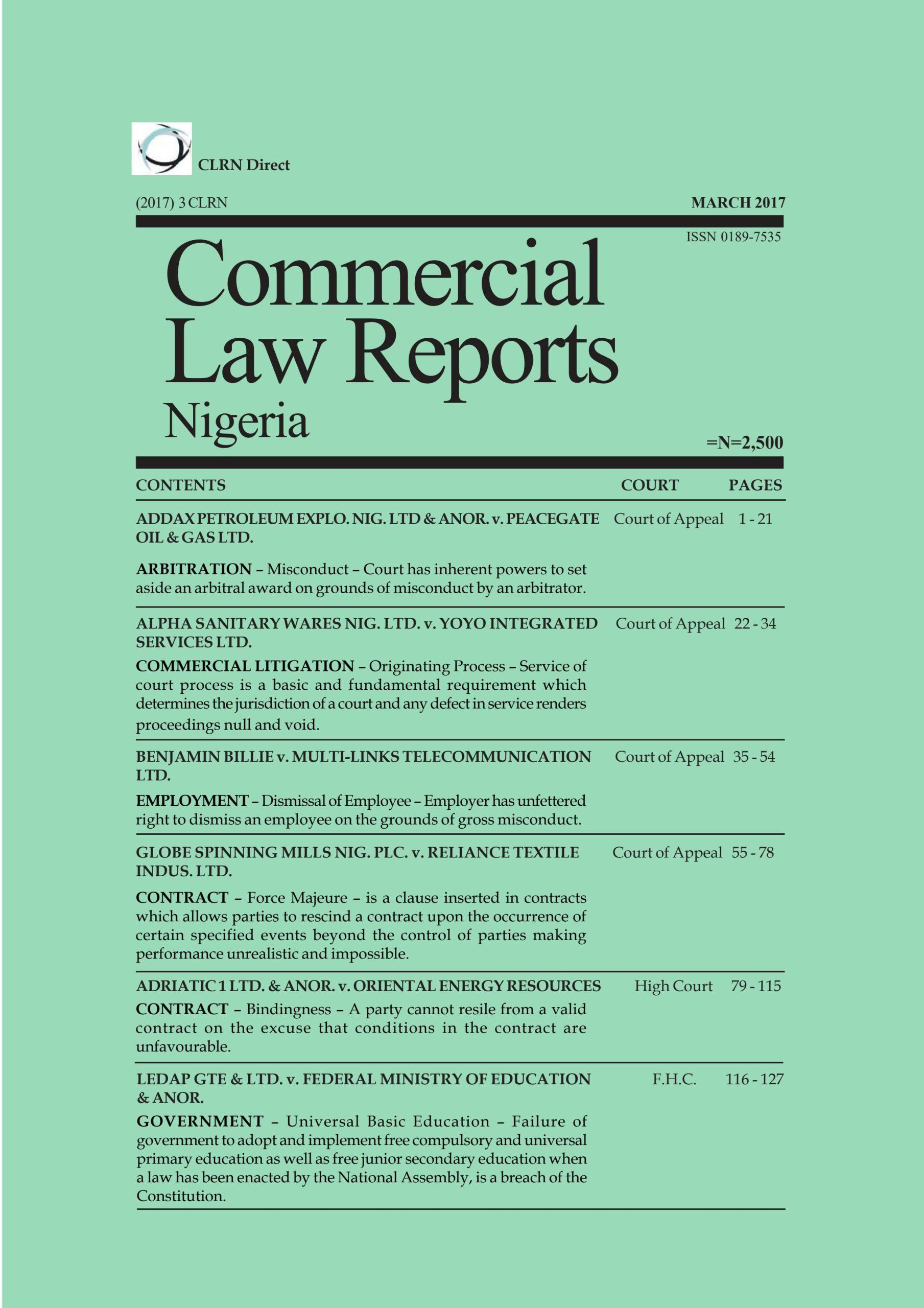 Addax Petroleum Explo. Nig. Ltd & Anor. v. Peacegate Oil & Gas Ltd.,