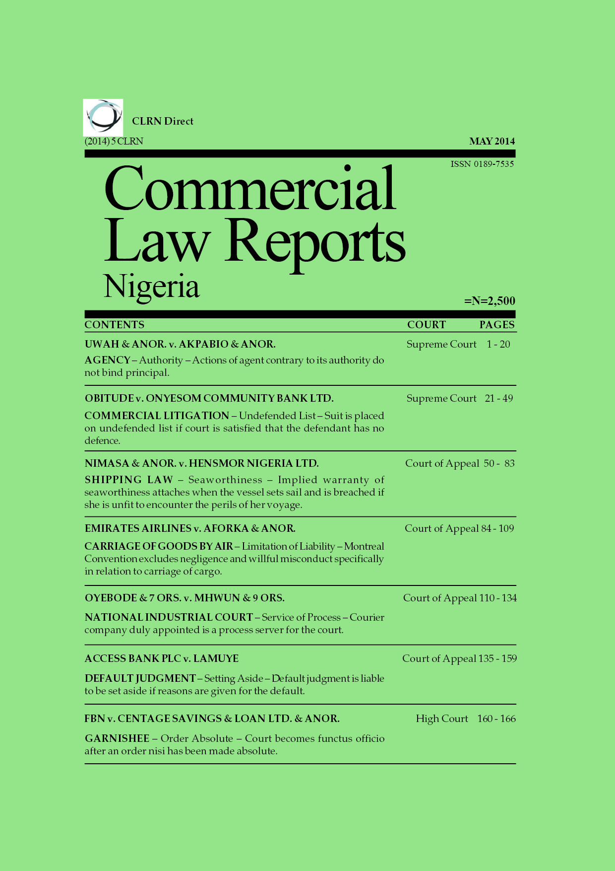 Emirates Airlines v. Aforka & Anor. (2014) 5 CLRN 84,