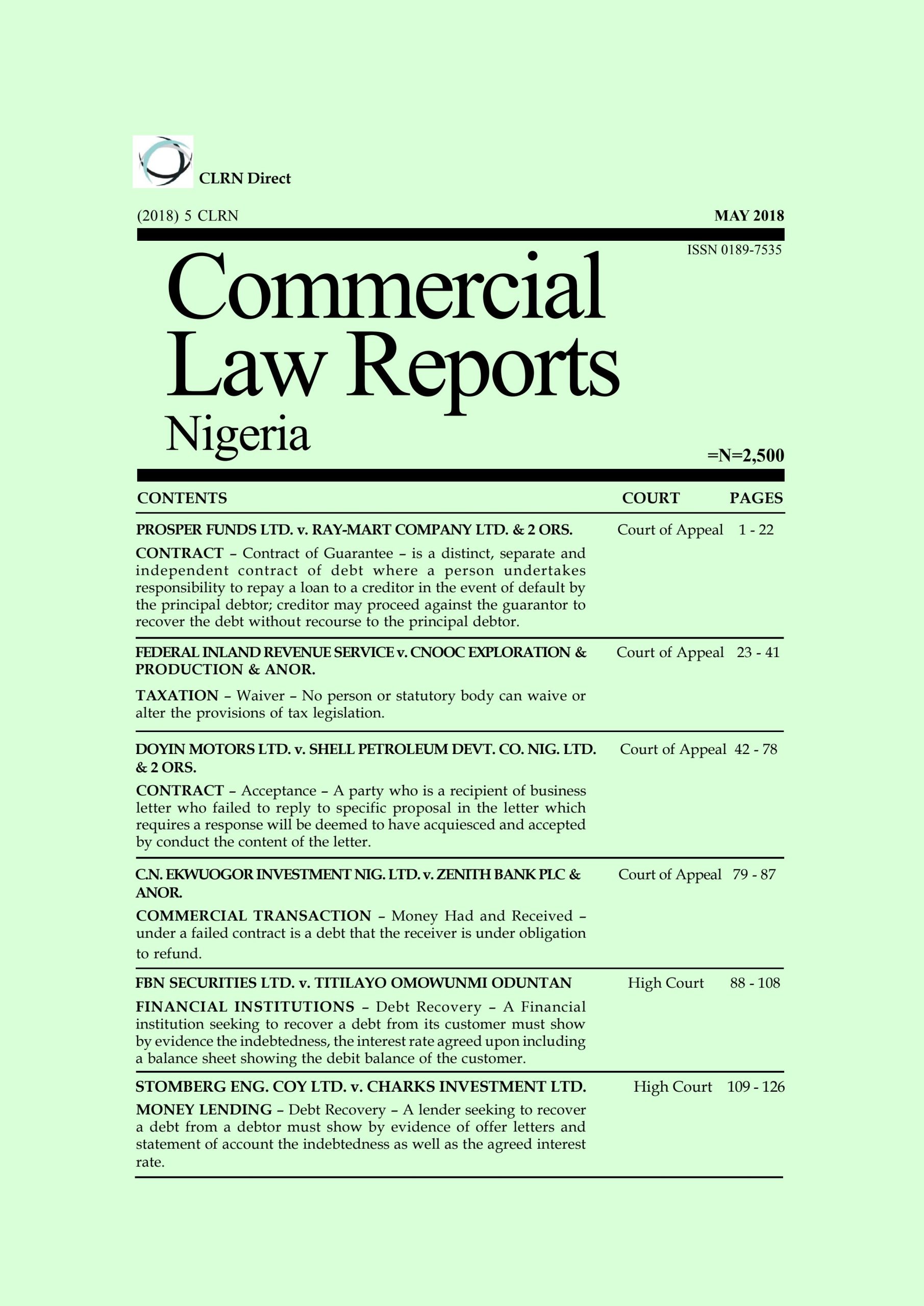 C.N. Ekwuogor Investment Nig. Ltd. v. Zenith Bank Plc & Anor. (2018) 5 CLRN 79,