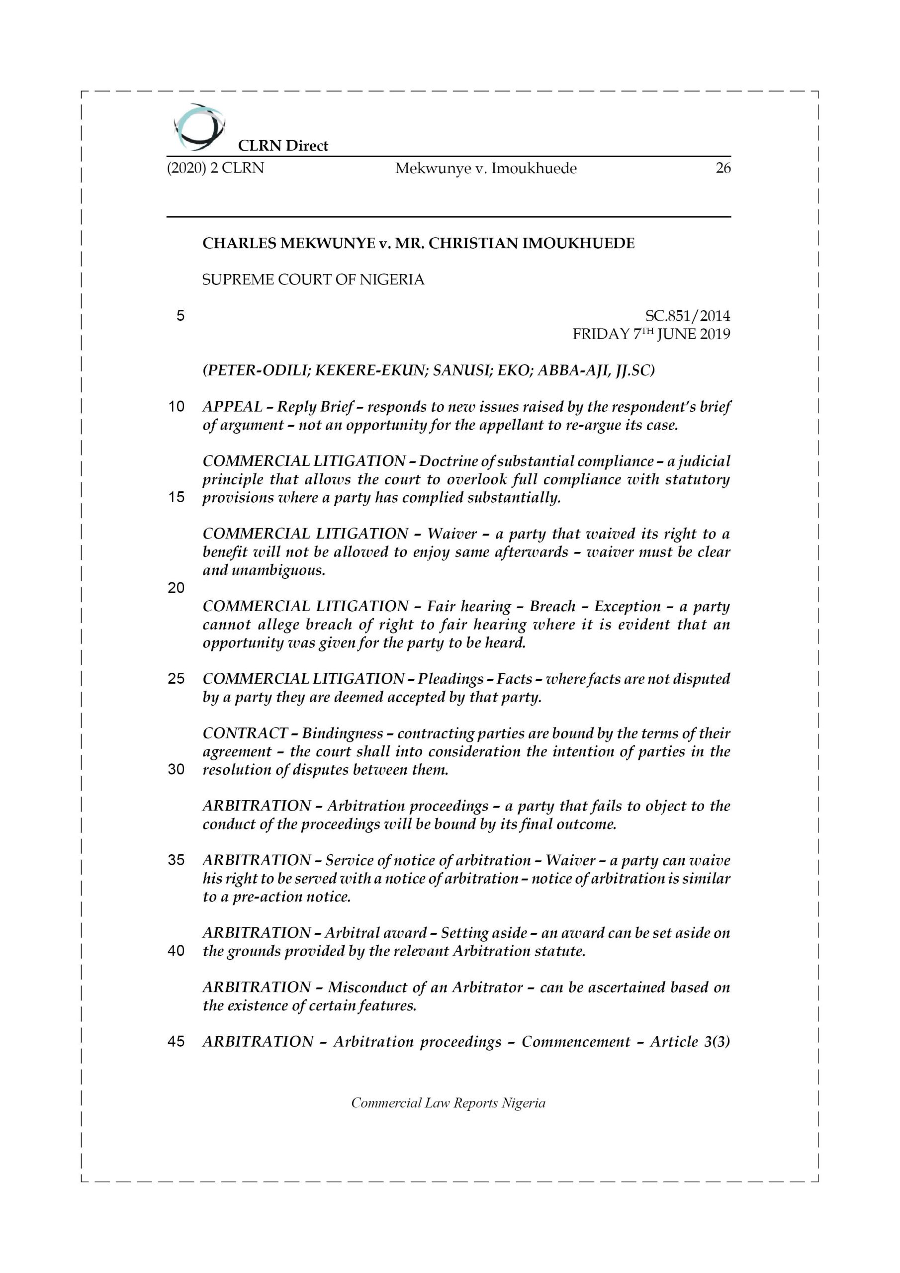 Aggrieved, the respondent appealed to the Court of Appeal. The lower court in its final decision unanimously allowed the appeal and set aside the arbitral proceedings.