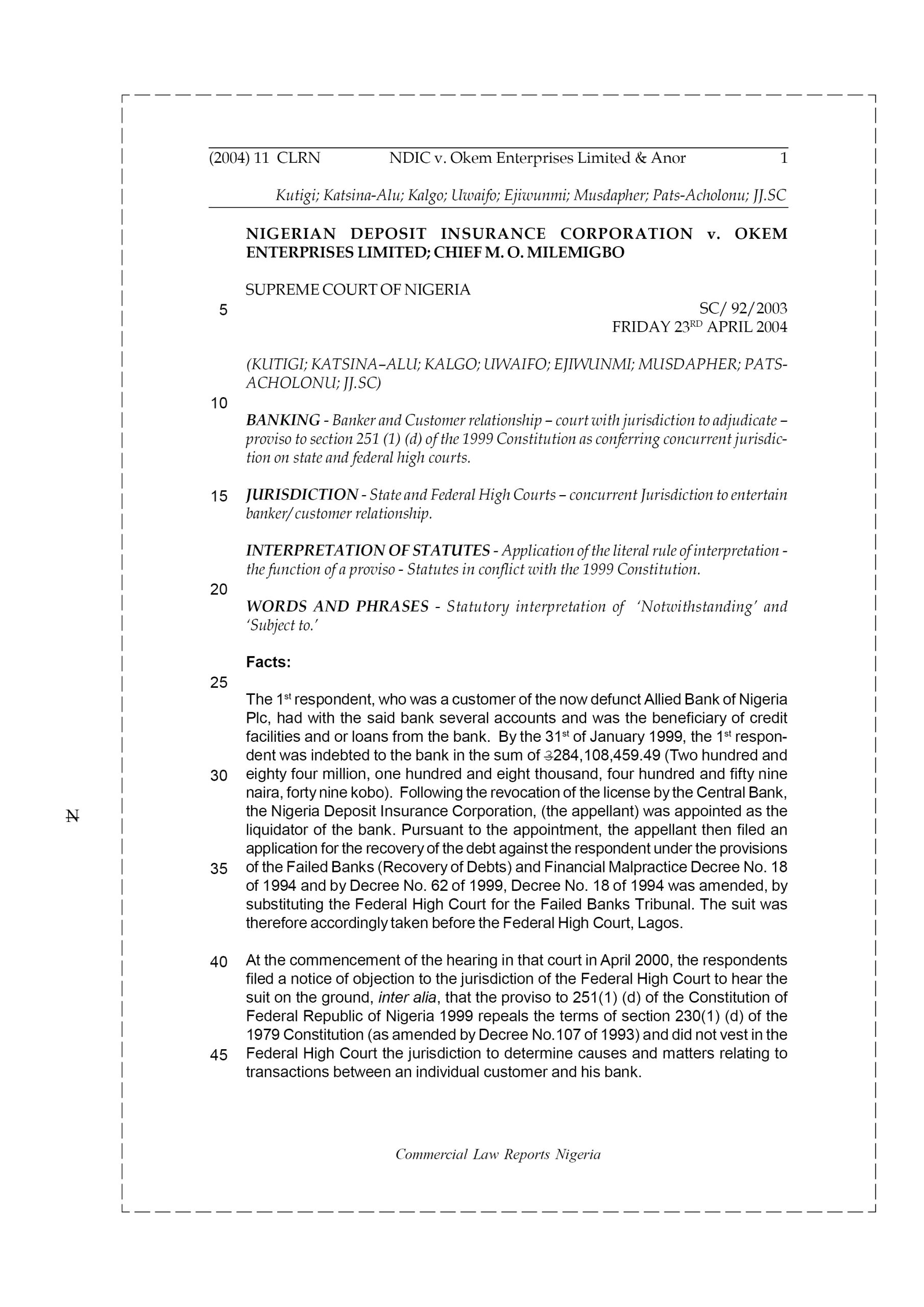 Extraction System & Commodity Services Ltd v. Nigbel Merchant Bank Ltd
