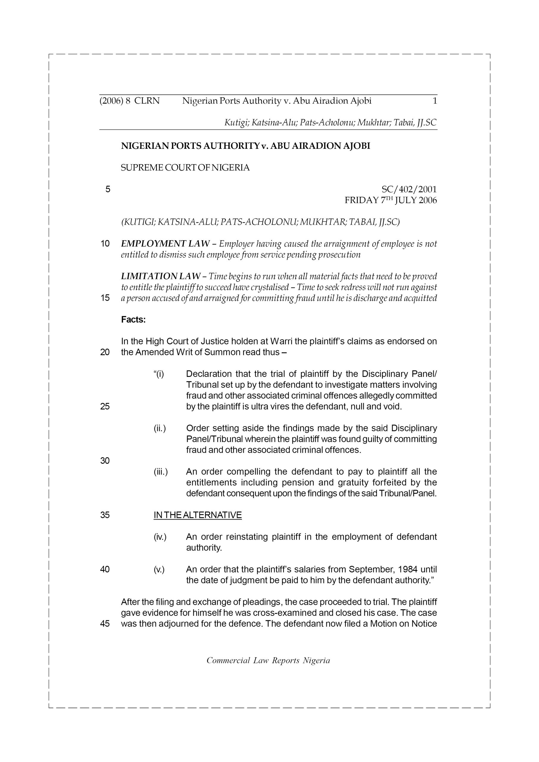 “(i.) Declaration that the trial of plaintiff by the Disciplinary Panel/Tribunal set up by the defendant to investigate matters involving fraud and other associated criminal offences allegedly committed by the plaintiff is ultra vires the defendant, null and void.