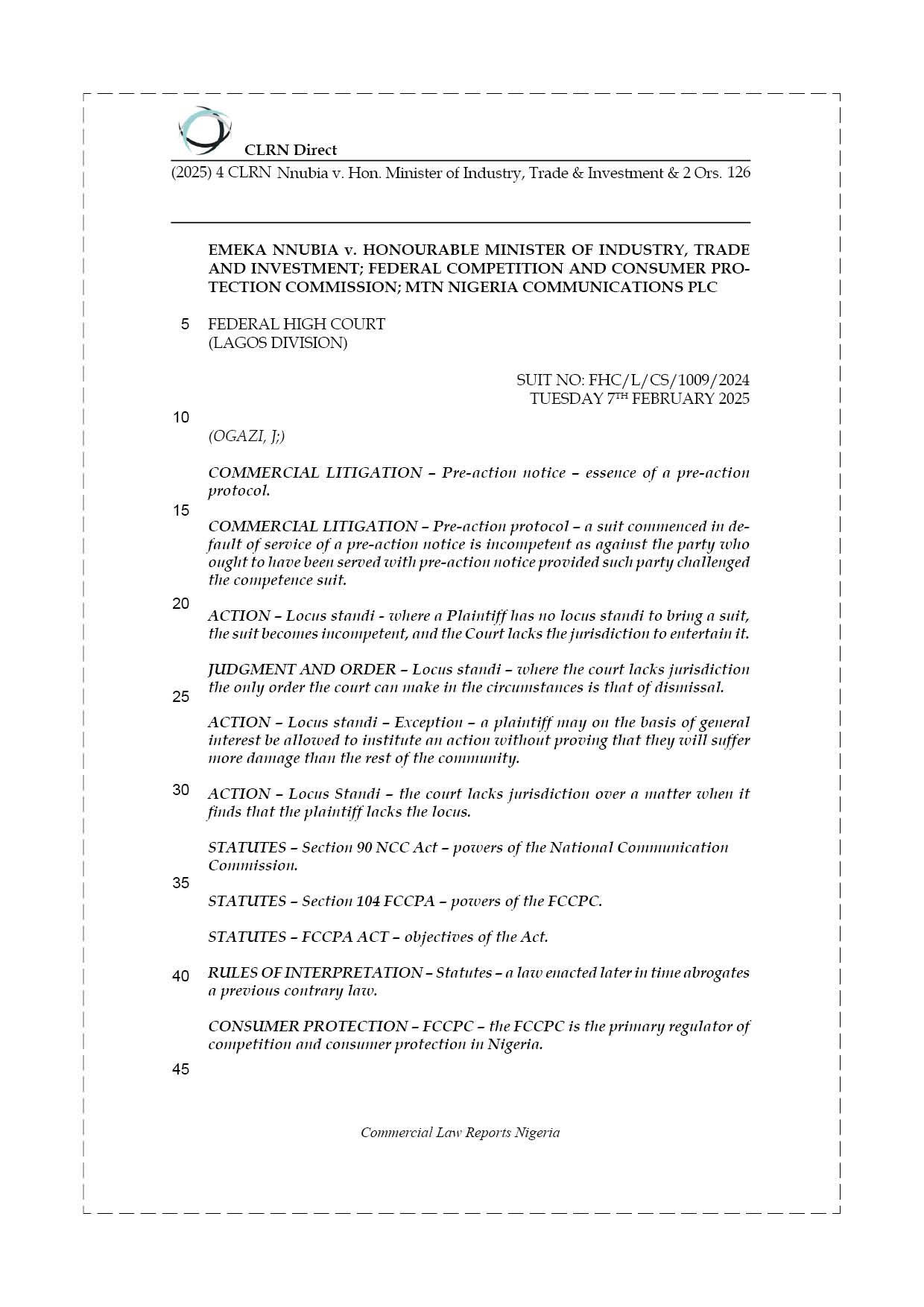 The Plaintiff, Emeka Nnubia, a shareholder in of the 3rd Defendant became aggrieved by the request of the FCCPC and filed an originating motion claiming that the 2nd Defendant has not provided any legitimate reason for which the 2nd Defendant was acting upon. It was the case of the Plaintiff that the 2nd Defendant lacked the statutory right to have requested such important and private information from the 3rd Defendant. The Plaintiffs action sought to nullify FCCPC’s summons, notices to produce, and all regulatory actions related to the investigation. Additionally, he claimed that the data requested by FCCPC constituted personal data and should not be subject to disclosure. The 3rd Defendant then declined to comply with the summons stating that there is a pending lawsuit seeking to set aside the summons.